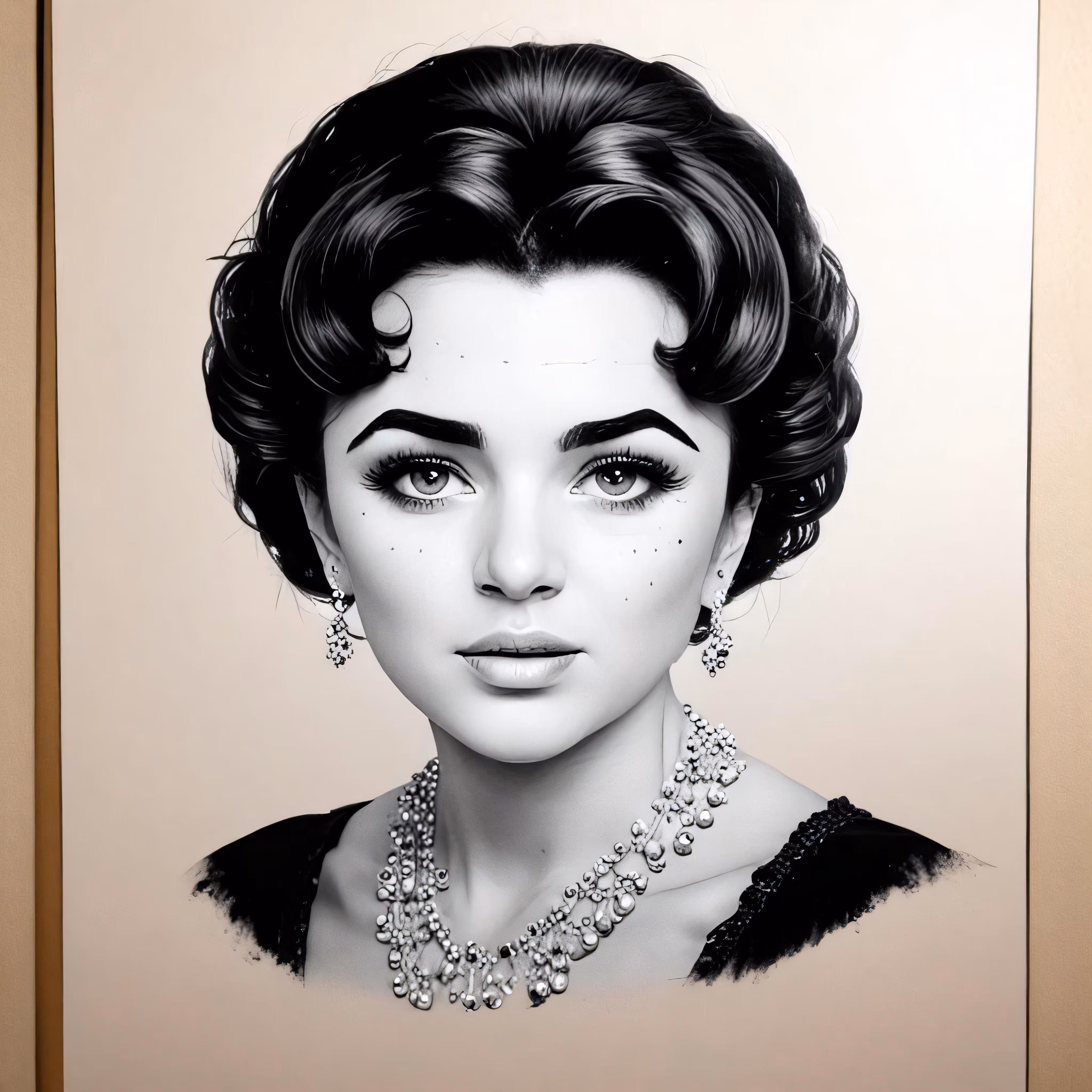 High resolution picture, free to use, a drawing of a woman with very dark hair