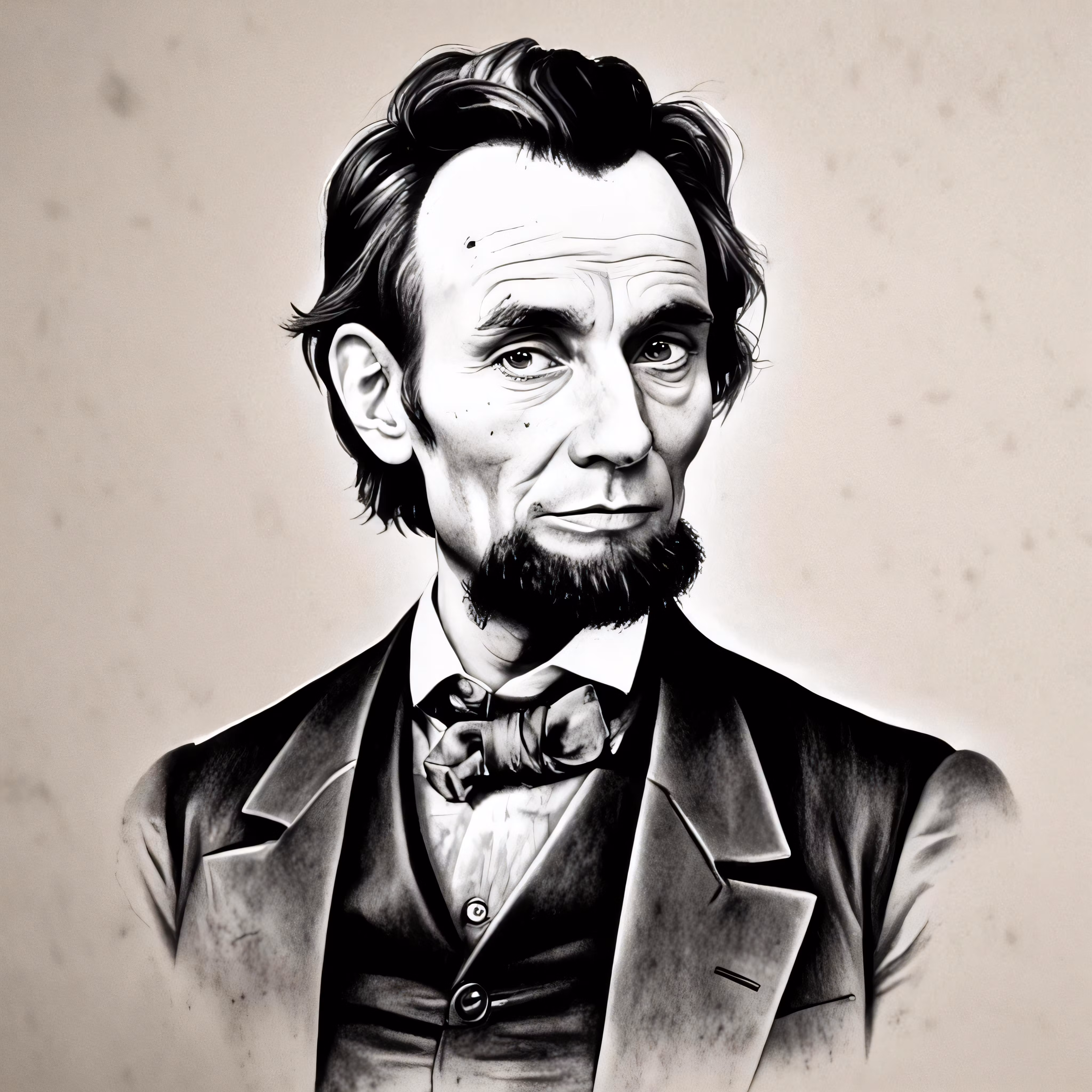 High resolution picture, free to use, a drawing of abraham lincoln with long hair and beard