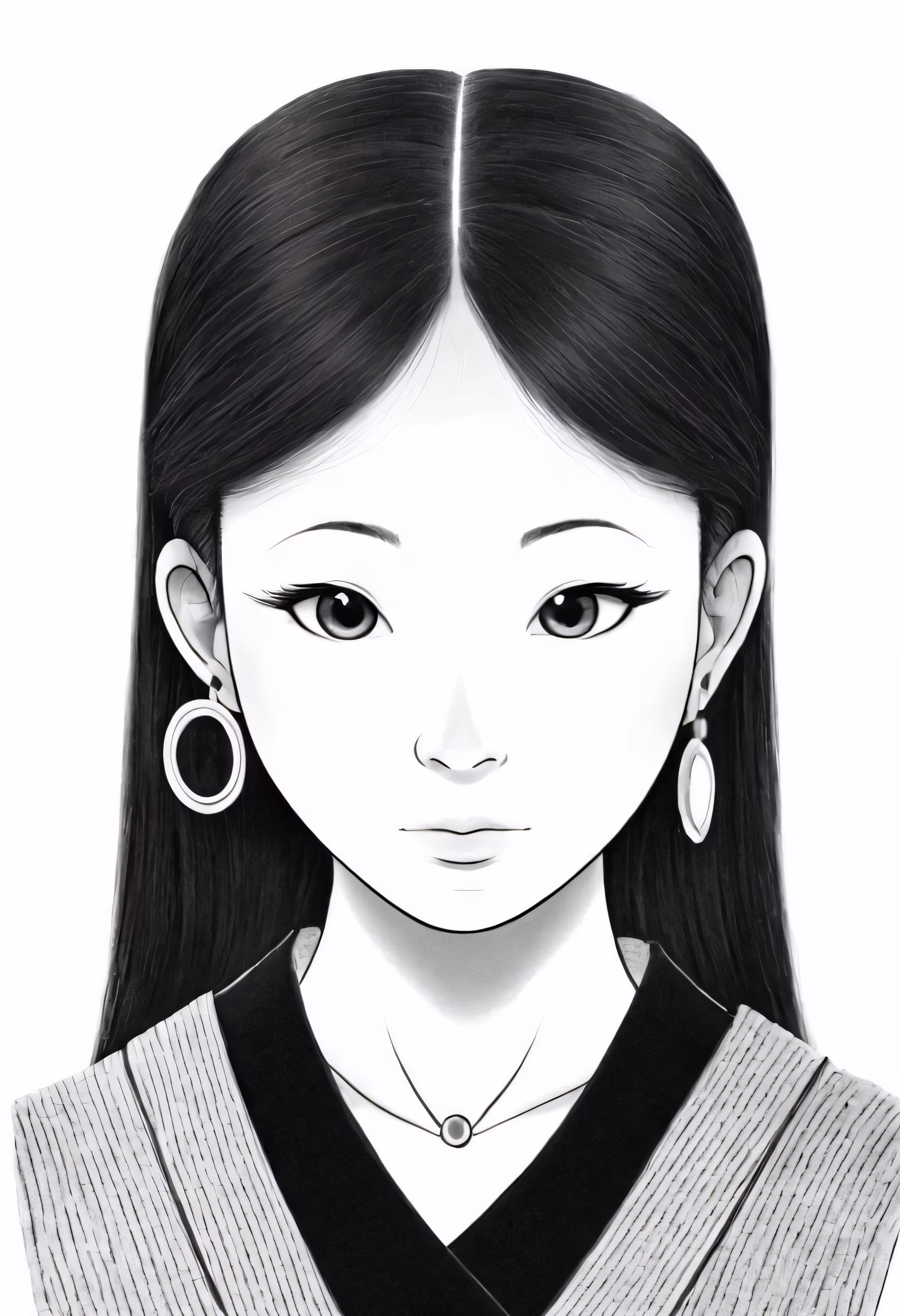 High resolution picture, free to use, a drawing of an asian girl in black and white