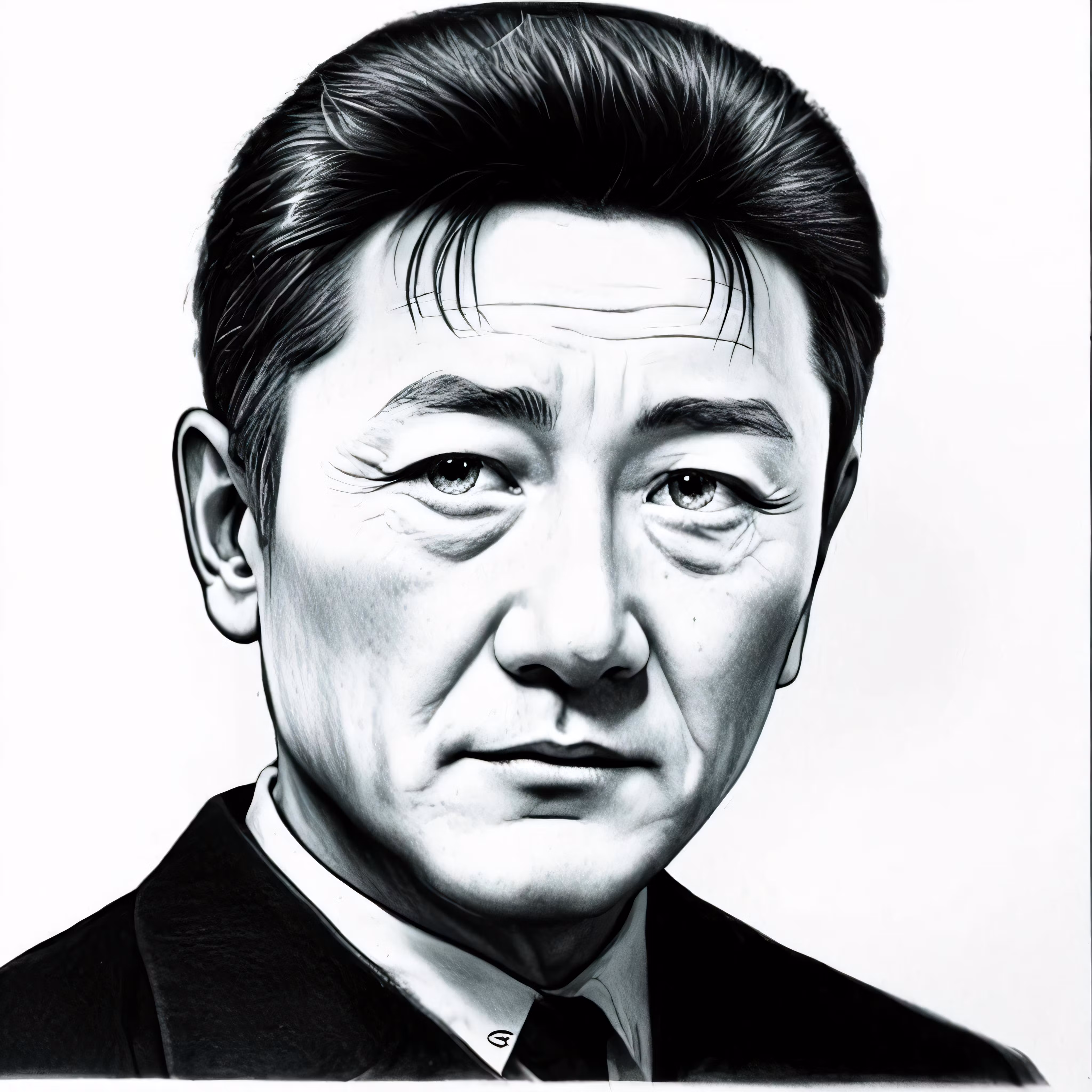 High resolution picture, free to use, a drawing of an asian man wearing a suit and tie