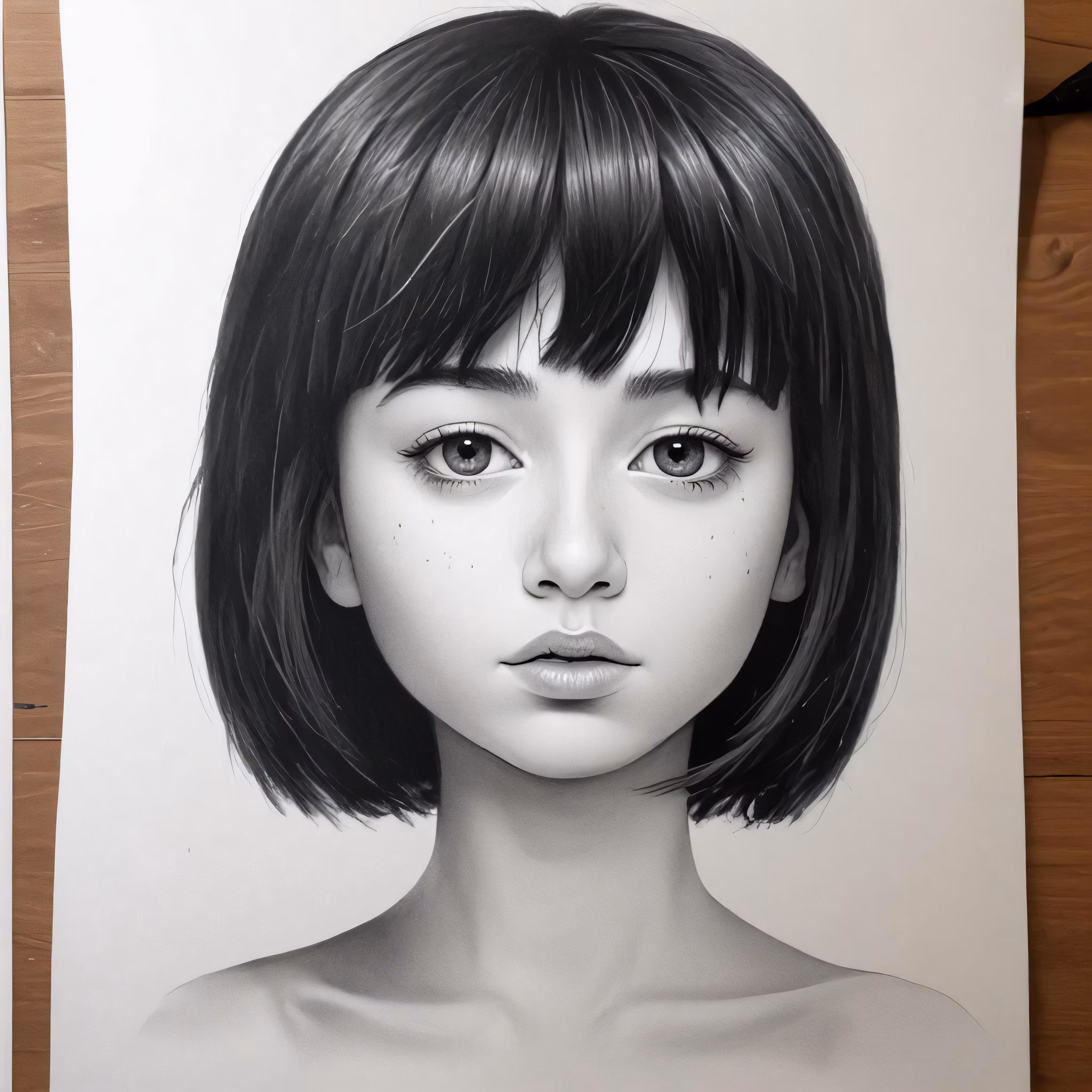 High resolution picture, free to use, a drawing of an avatar is shown in black and white