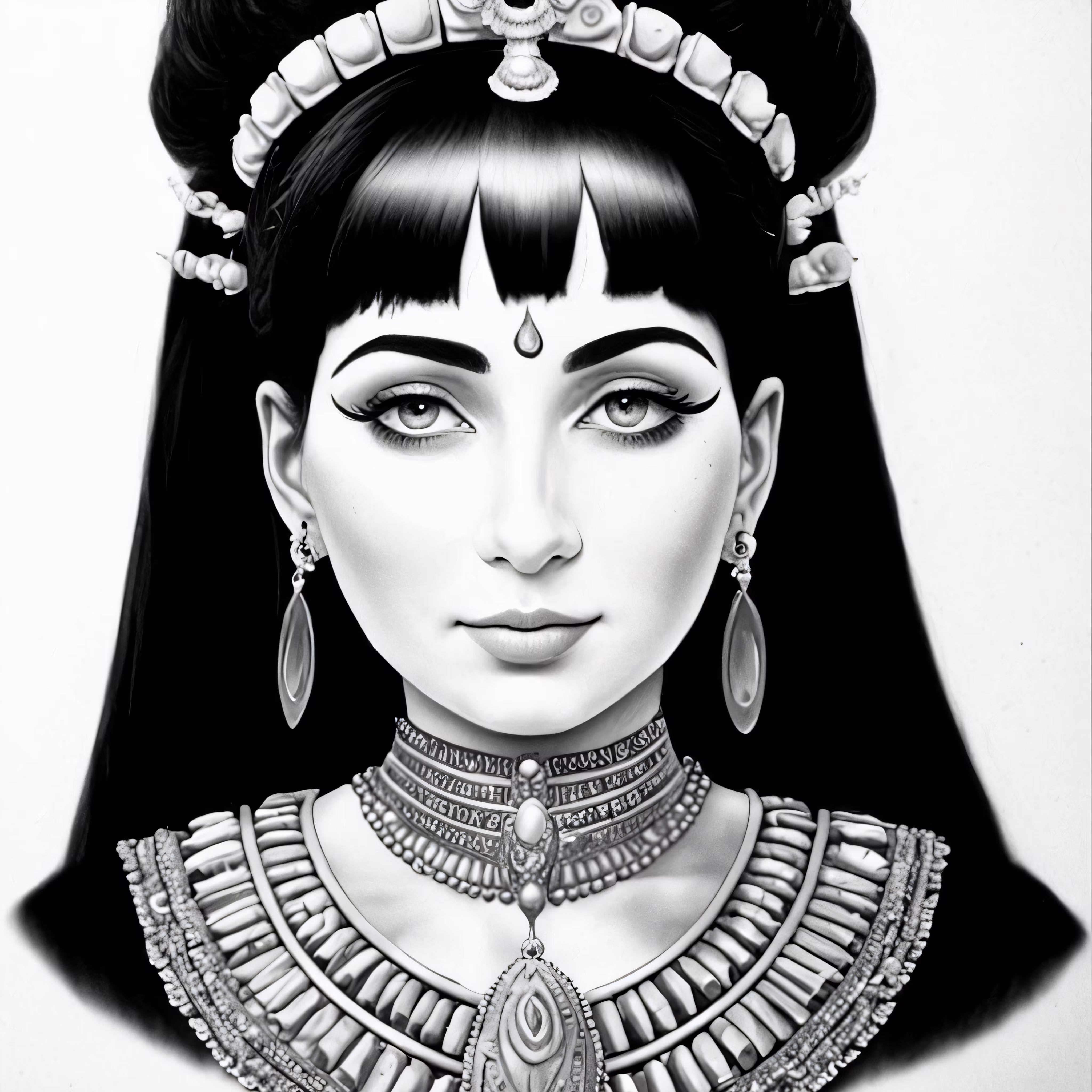 High resolution picture, free to use, a drawing of an avatar woman wearing indian jewelry