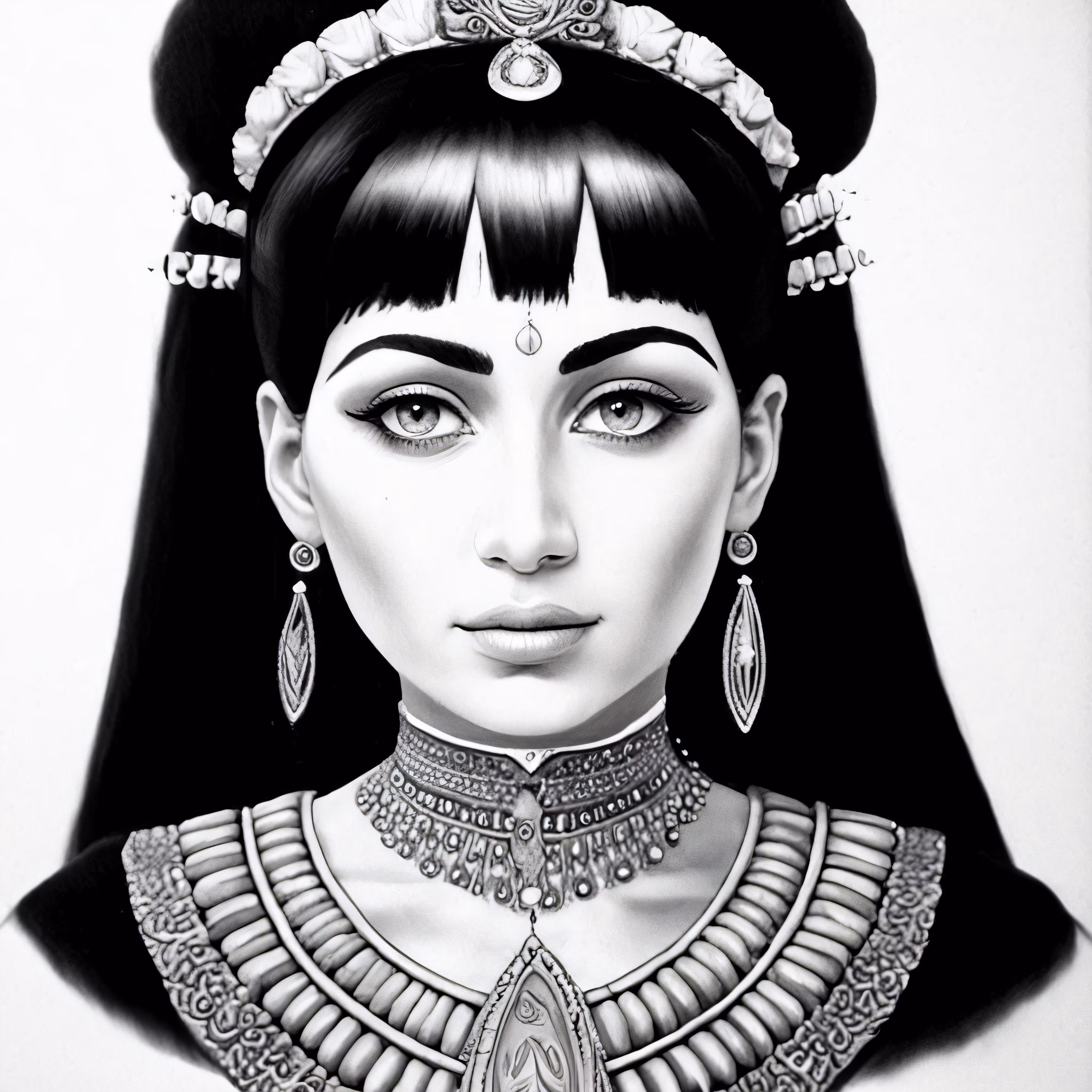 High resolution picture, free to use, a drawing of an egyptian woman wearing black dress and jewelry