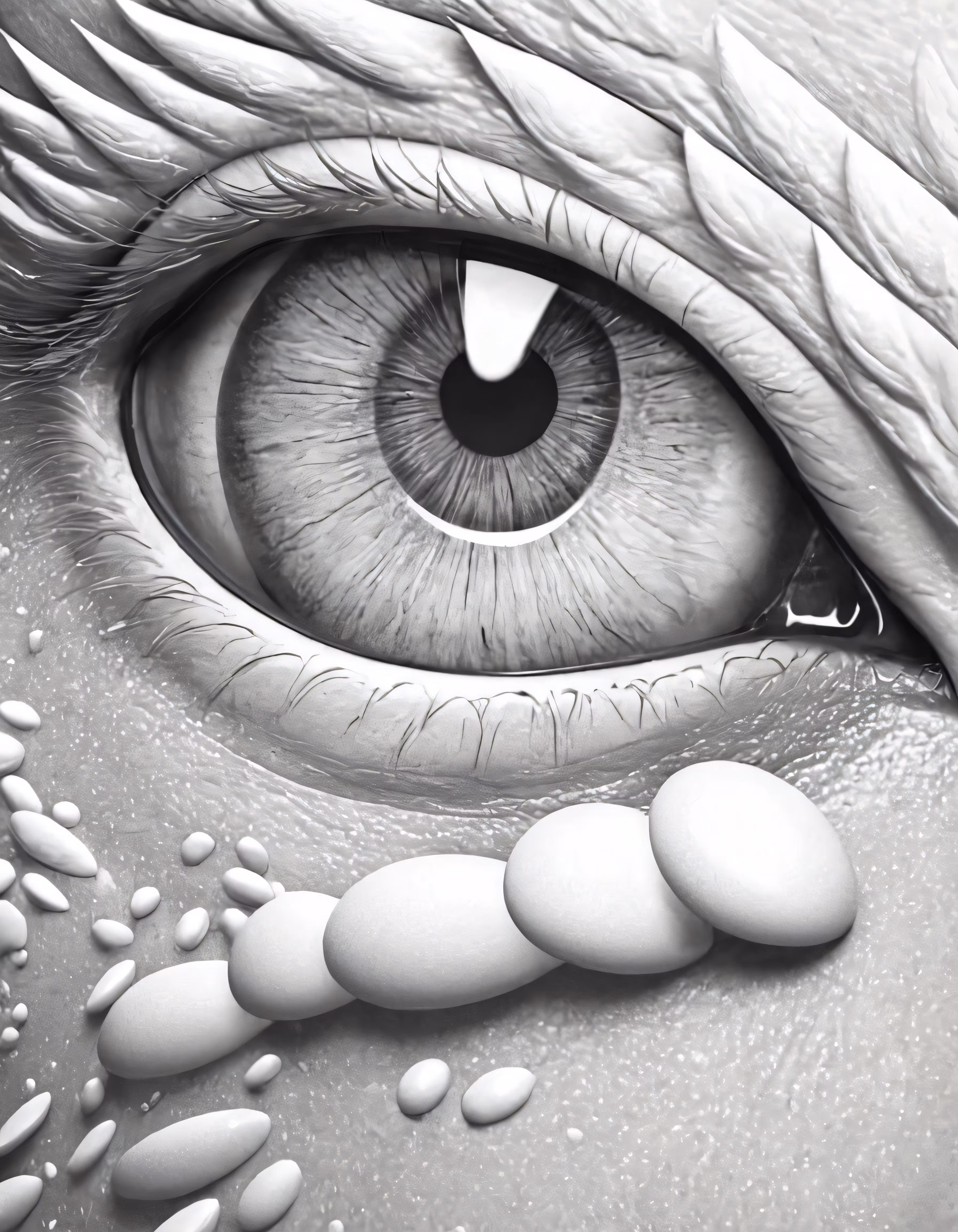High resolution picture, free to use, a drawing of an eye and some kind of fish
