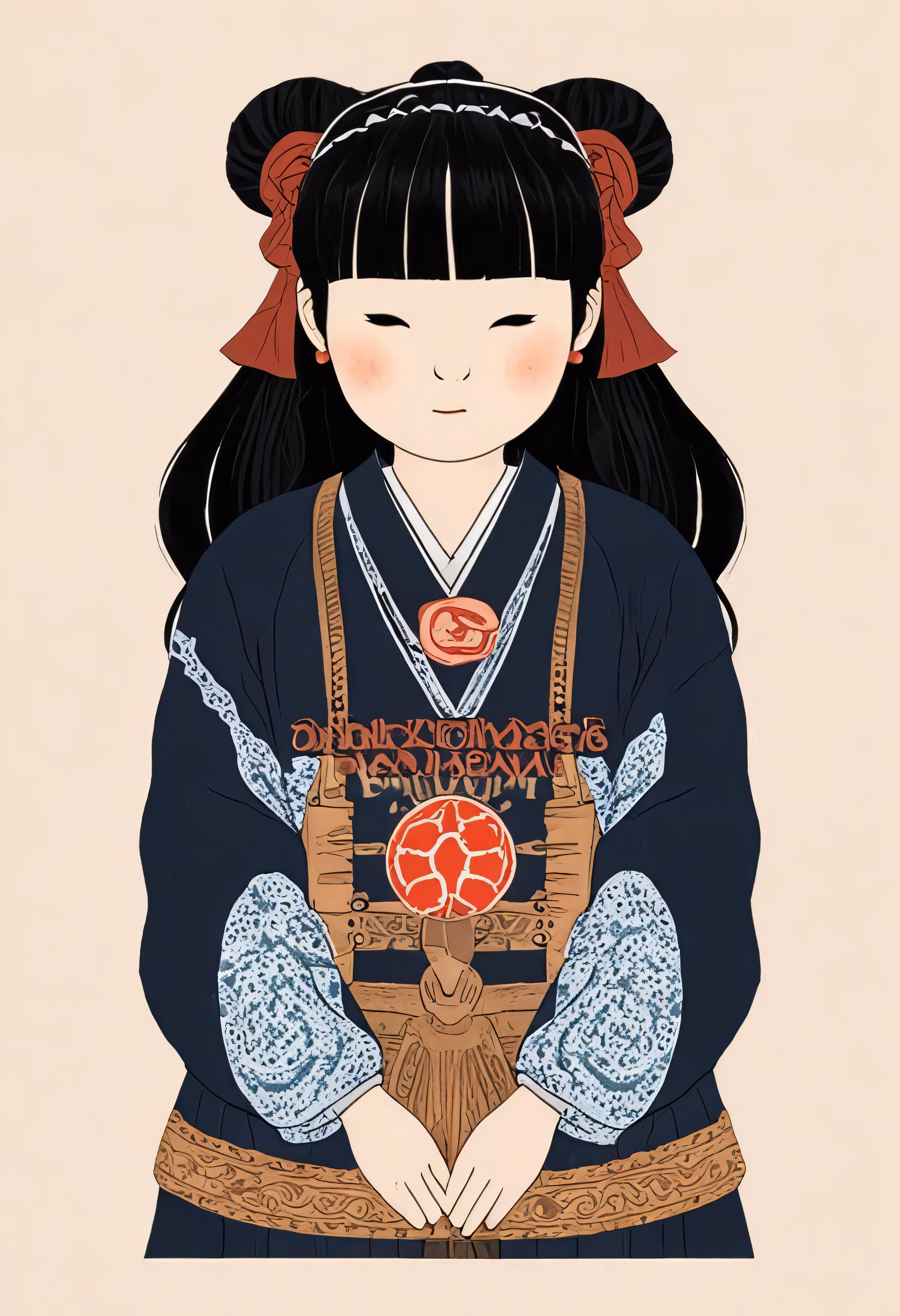 High resolution picture, free to use, a drawing of an oriental woman in traditional clothes
