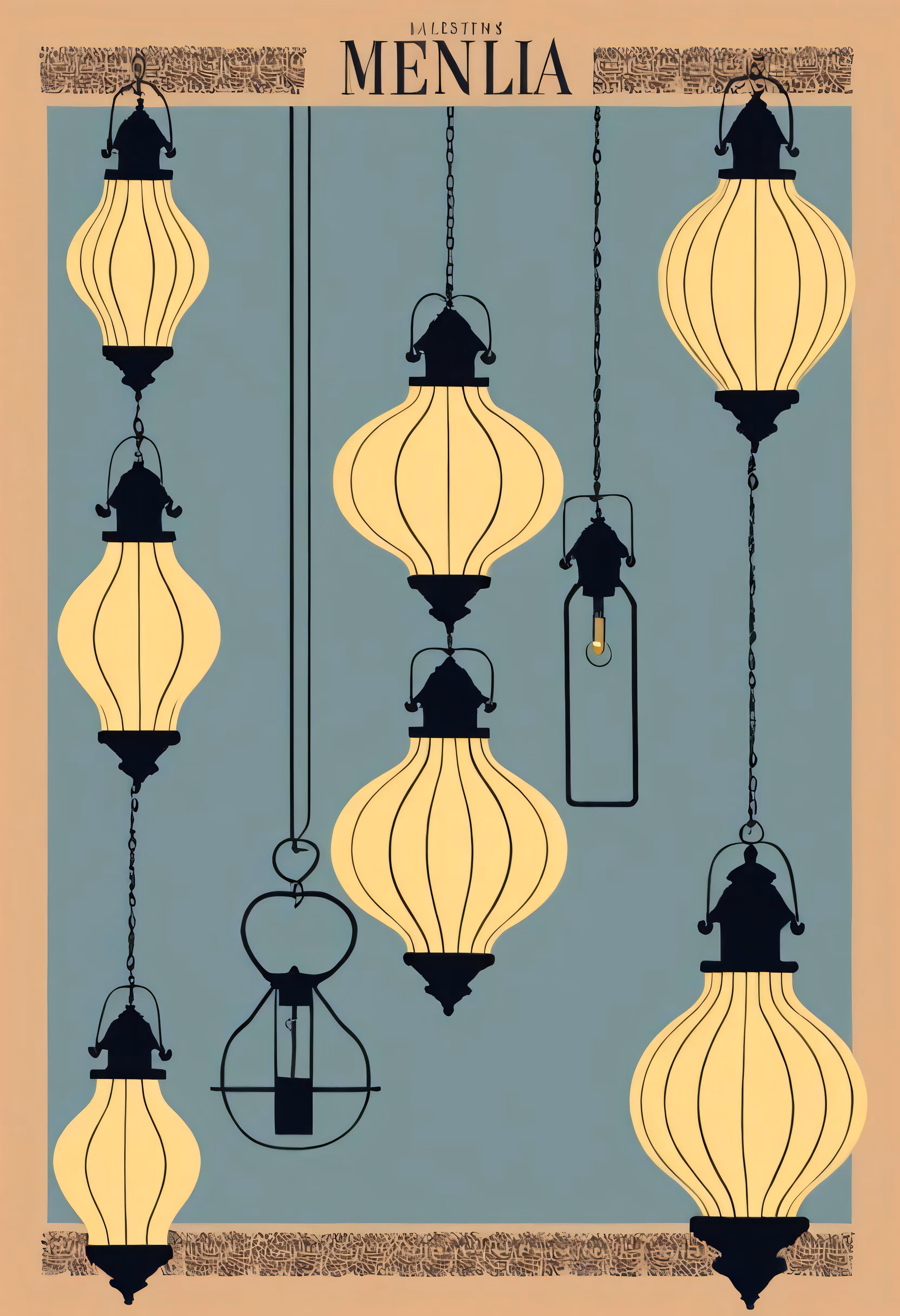 High resolution picture, free to use, a drawing of lamps hanging from a ceiling