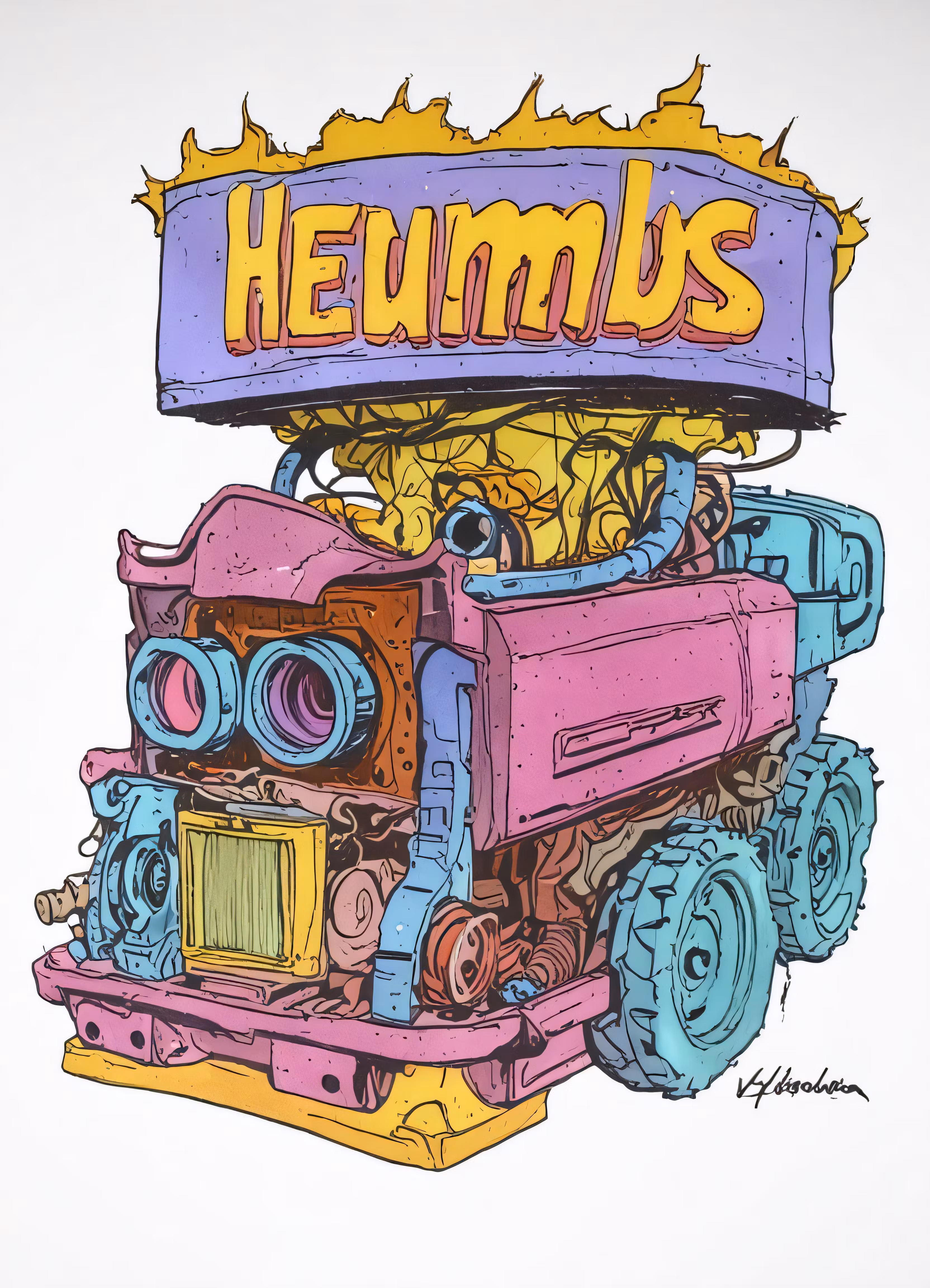 High resolution picture, free to use, a drawing of the engine of a pink truck with the words he mums