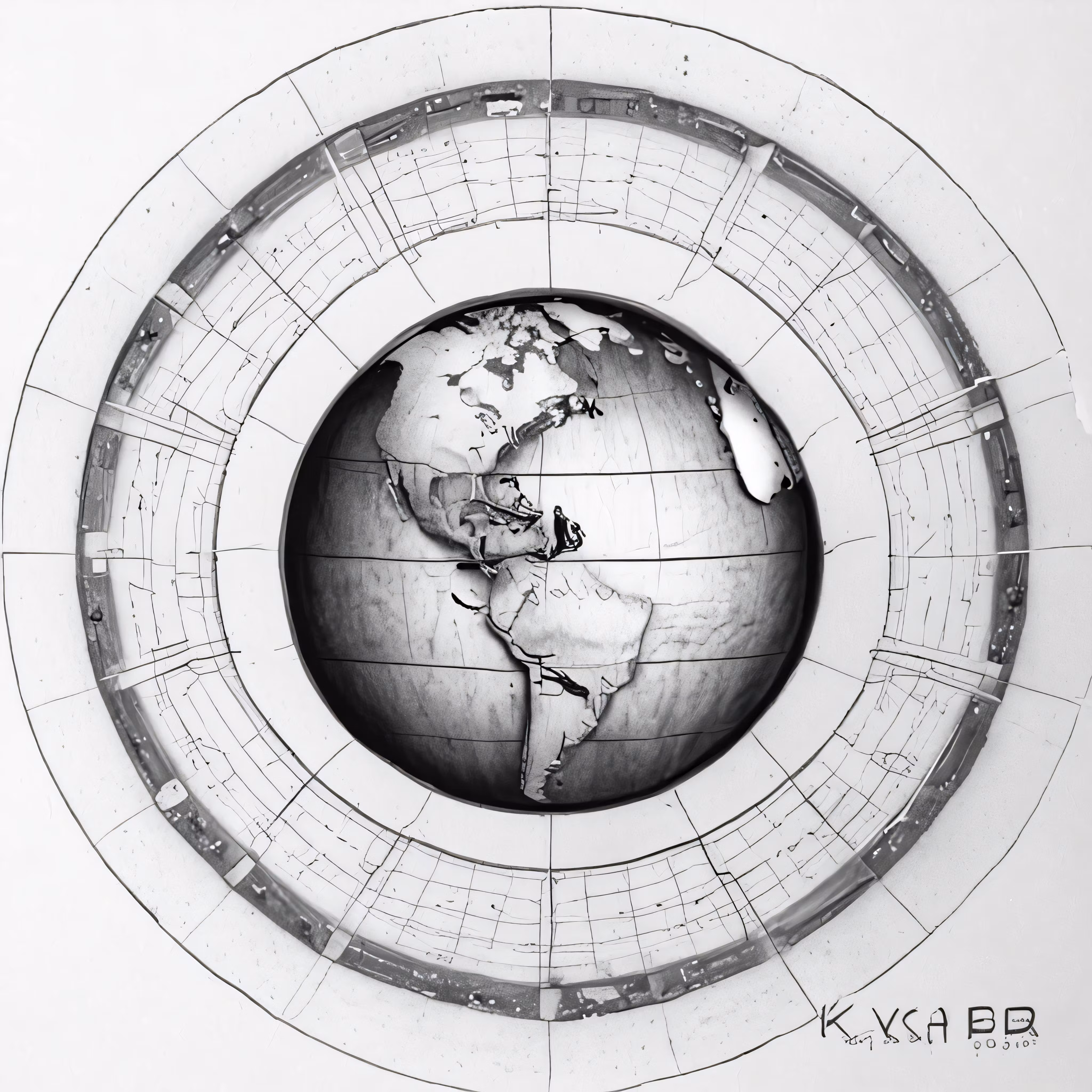 High resolution picture, free to use, a drawing of the world surrounded by a ring