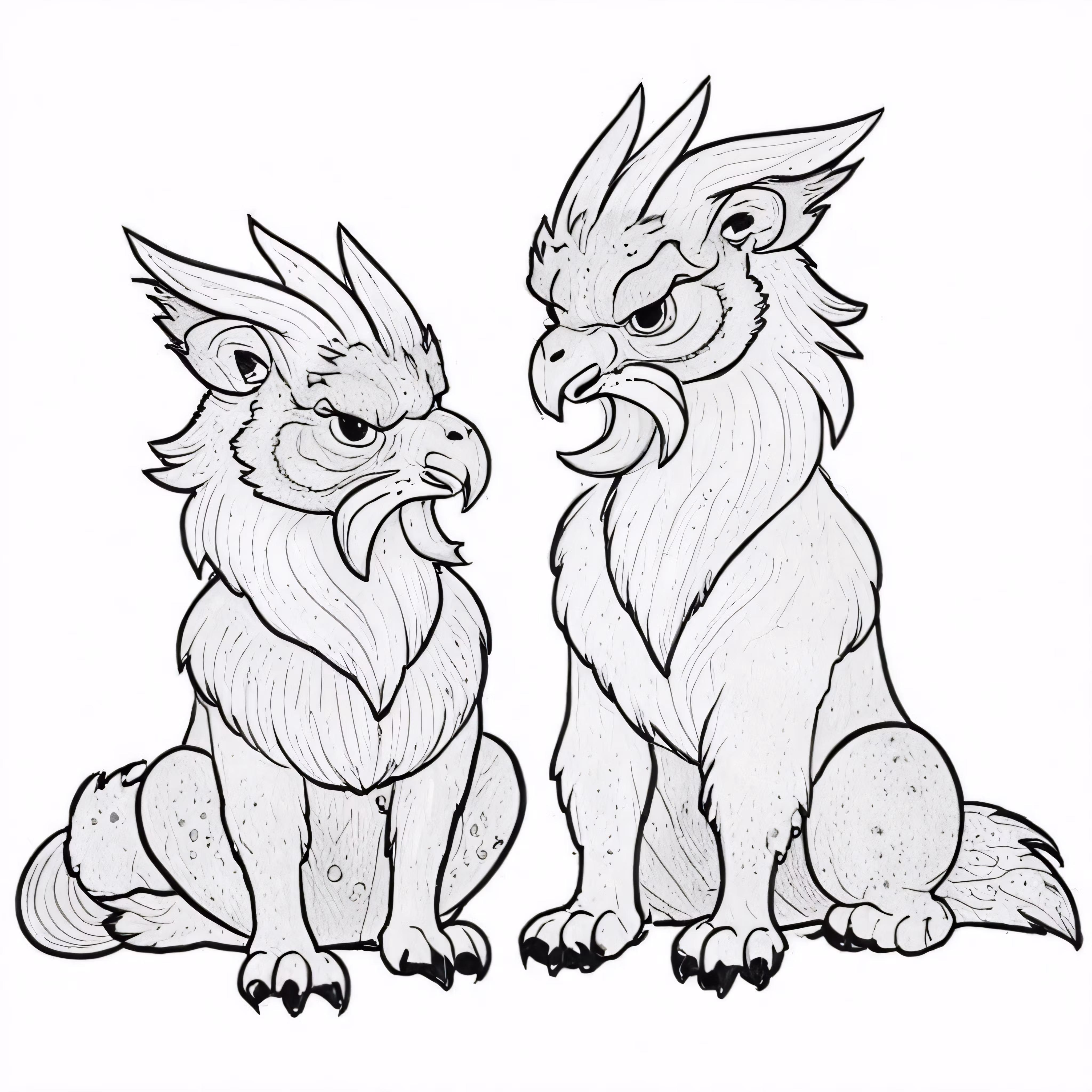 High resolution picture, free to use, a drawing of two small monsters that have their mouths open