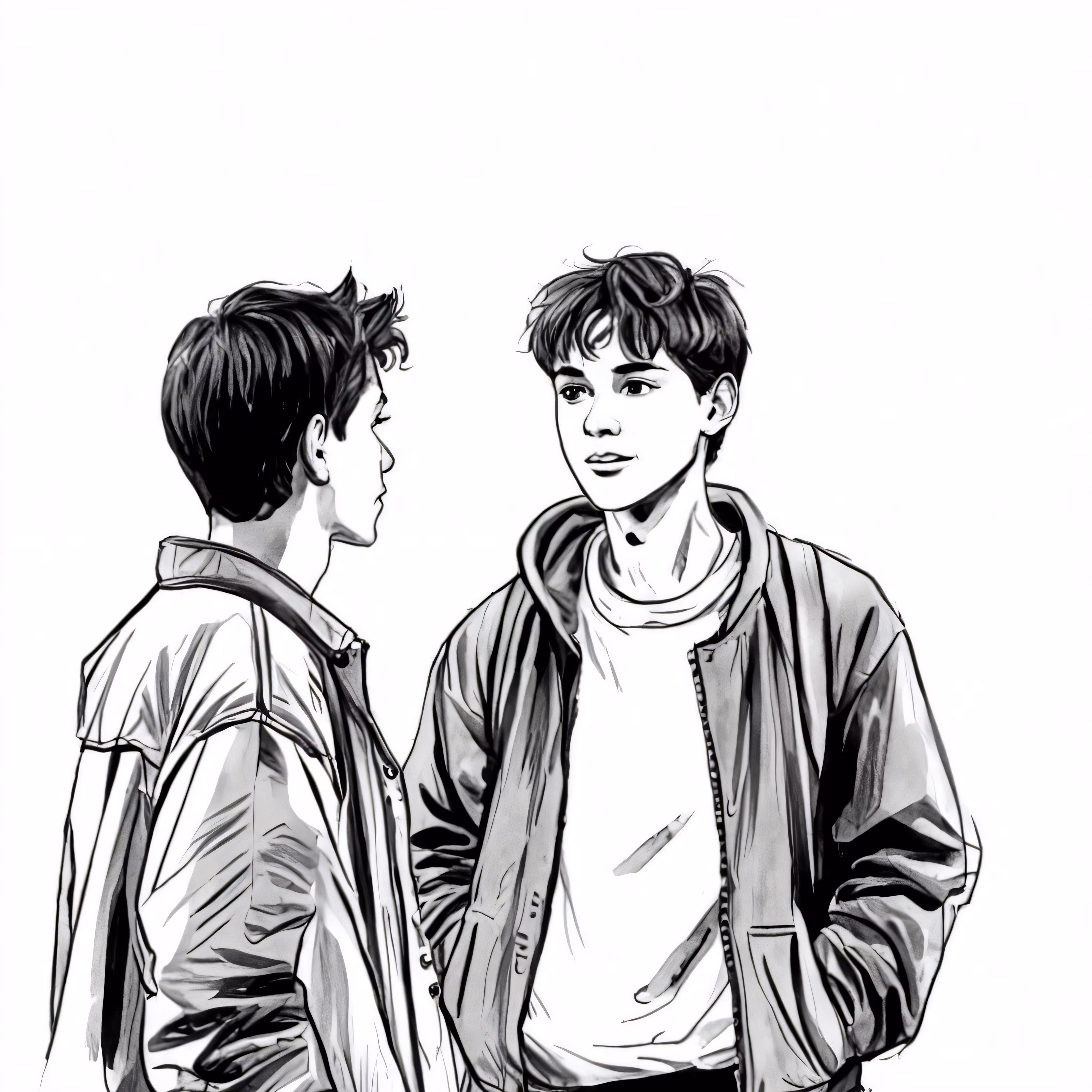 High resolution picture, free to use, a drawing of two young men looking at each other
