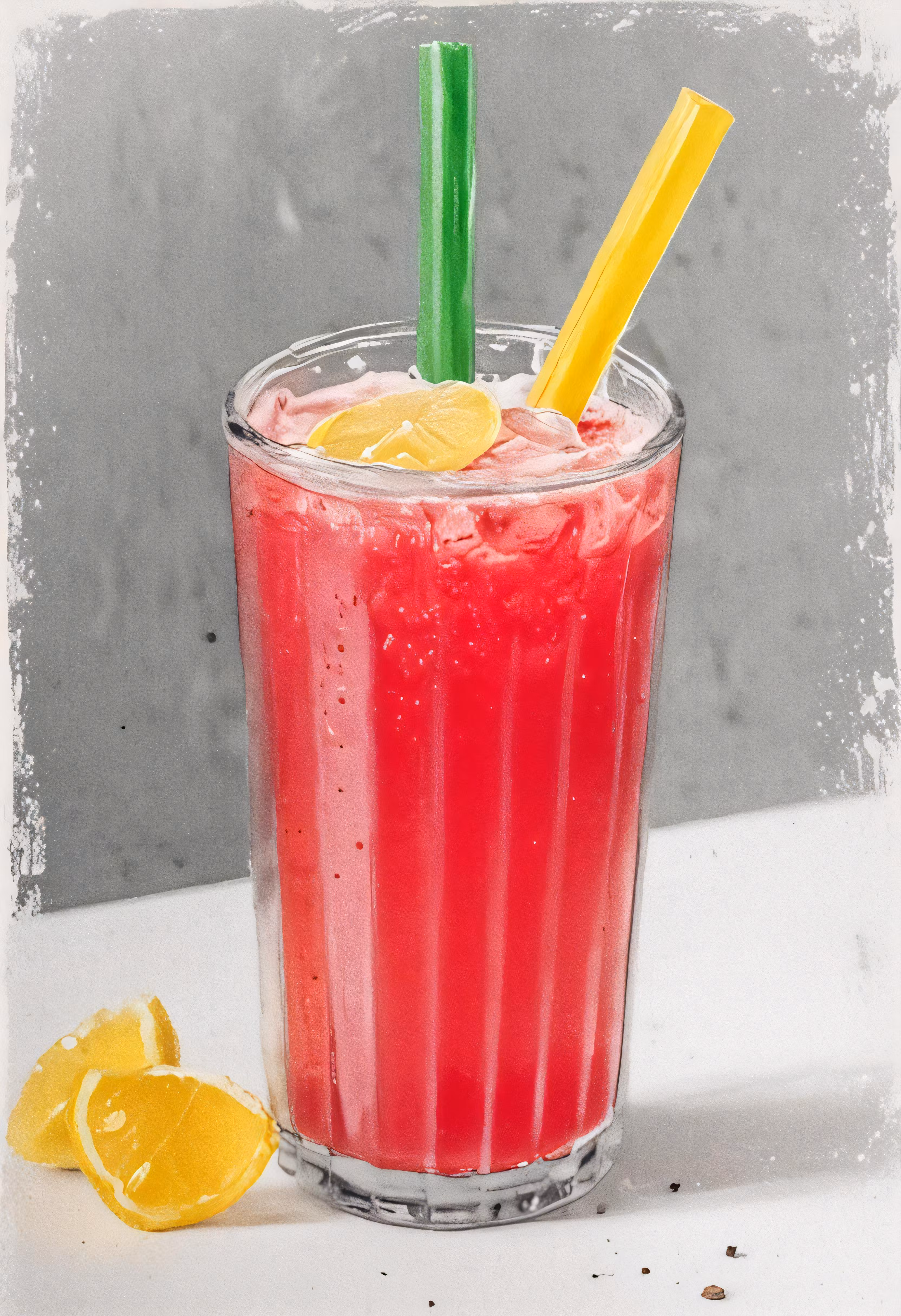 High resolution picture, free to use, a drink with lemon and straw sitting next to it
