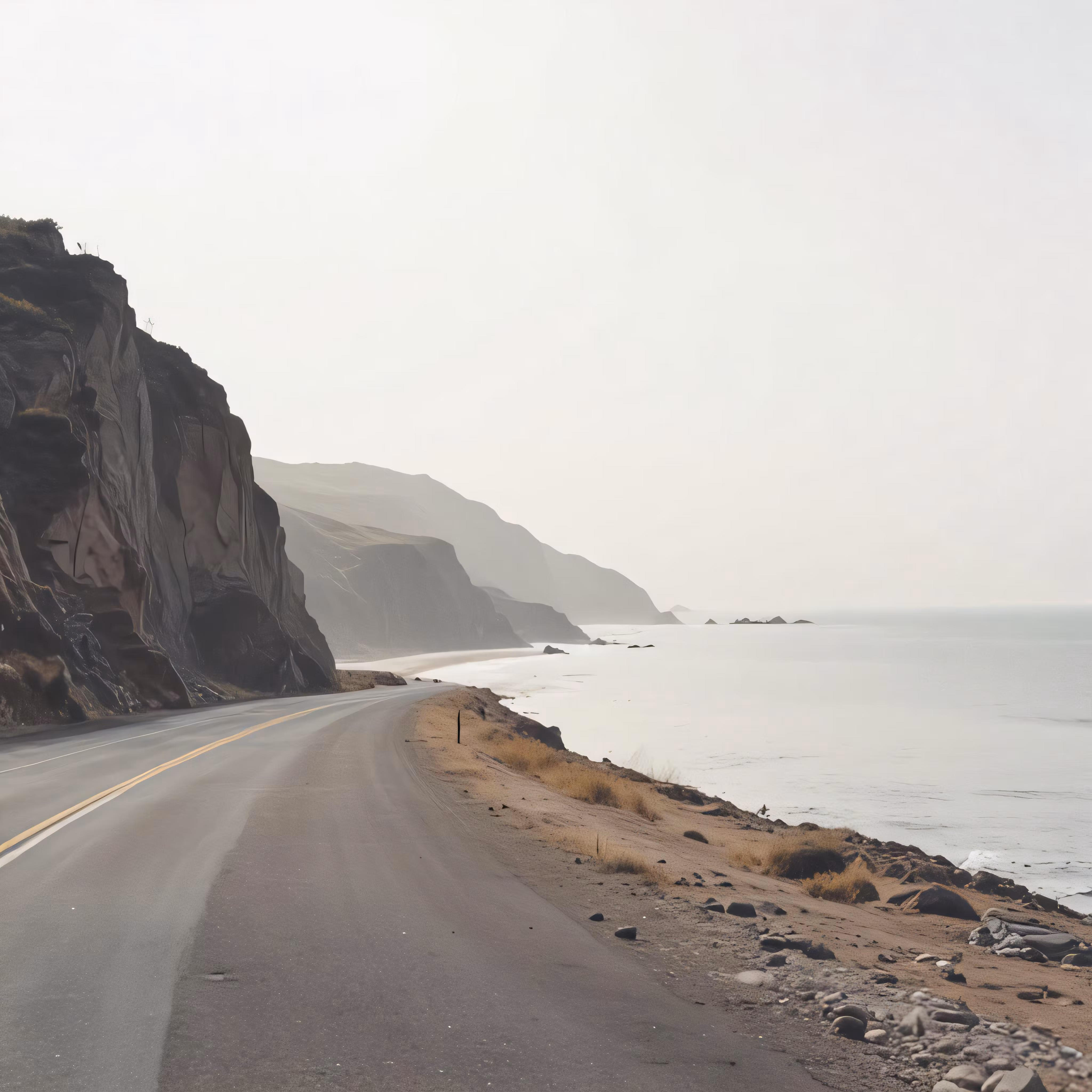 High resolution picture, free to use, a empty road next to the ocean and cliffs
