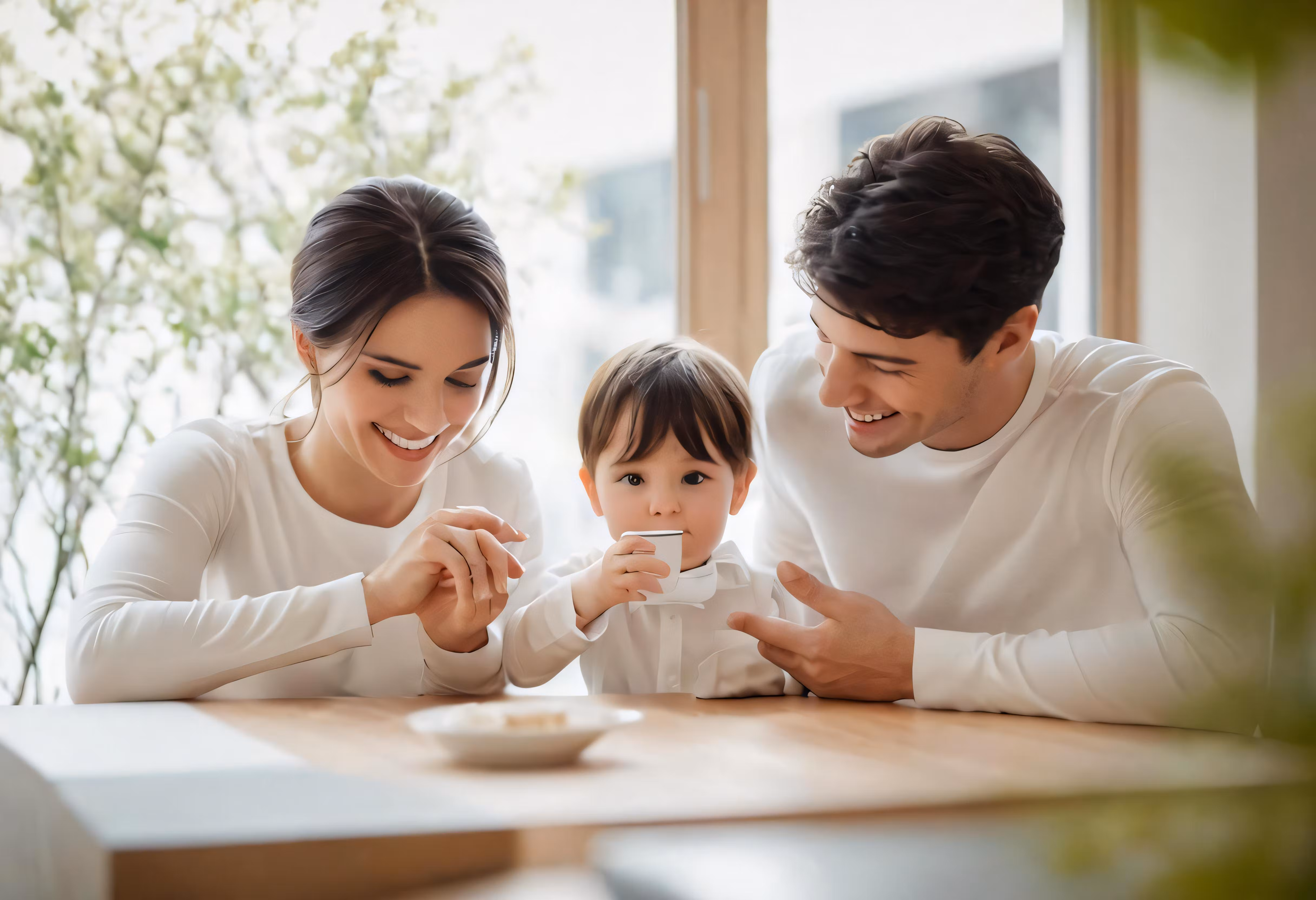 High resolution picture, free to use, a family are drinking from tea cups
