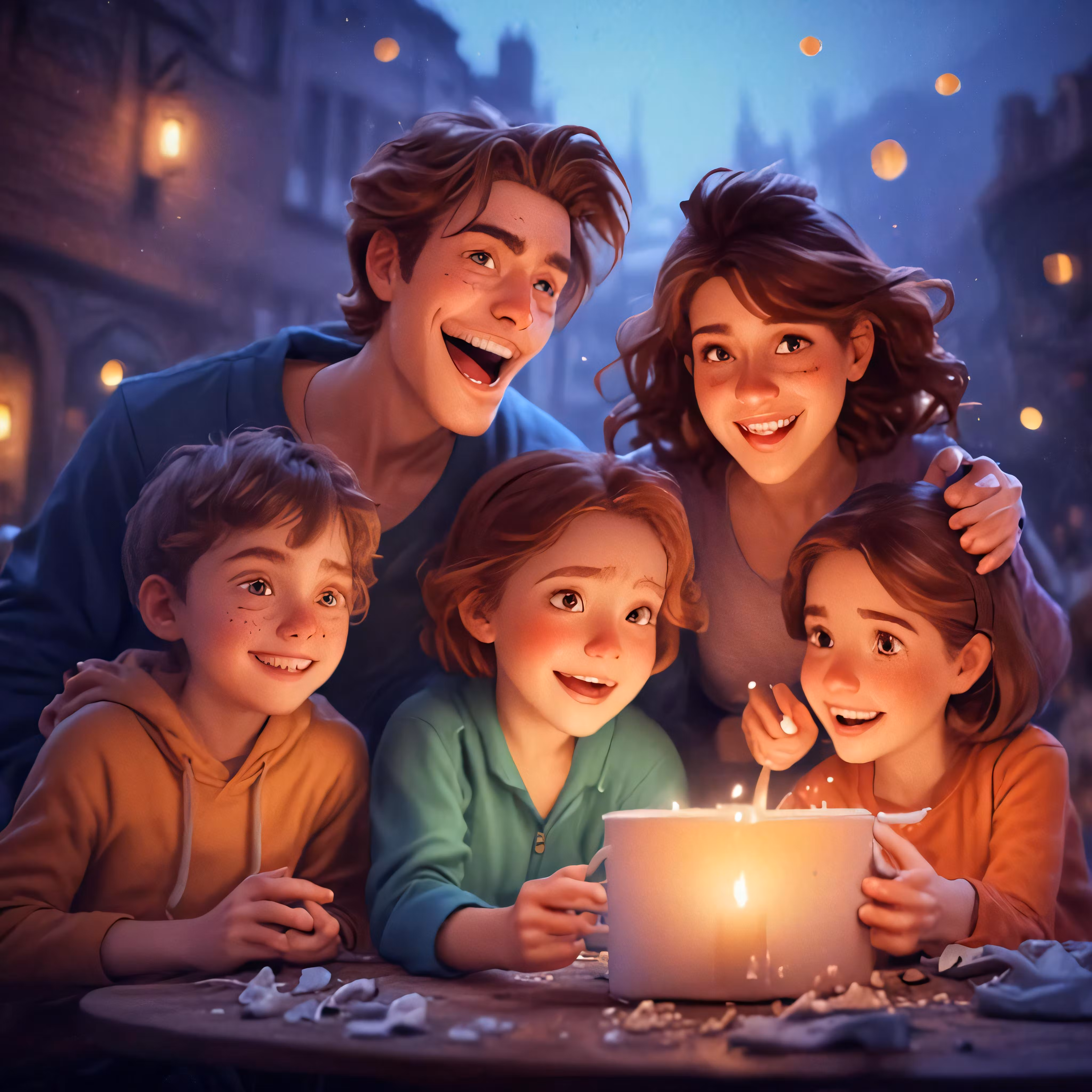 High resolution picture, free to use, a family sitting together around a lit candle