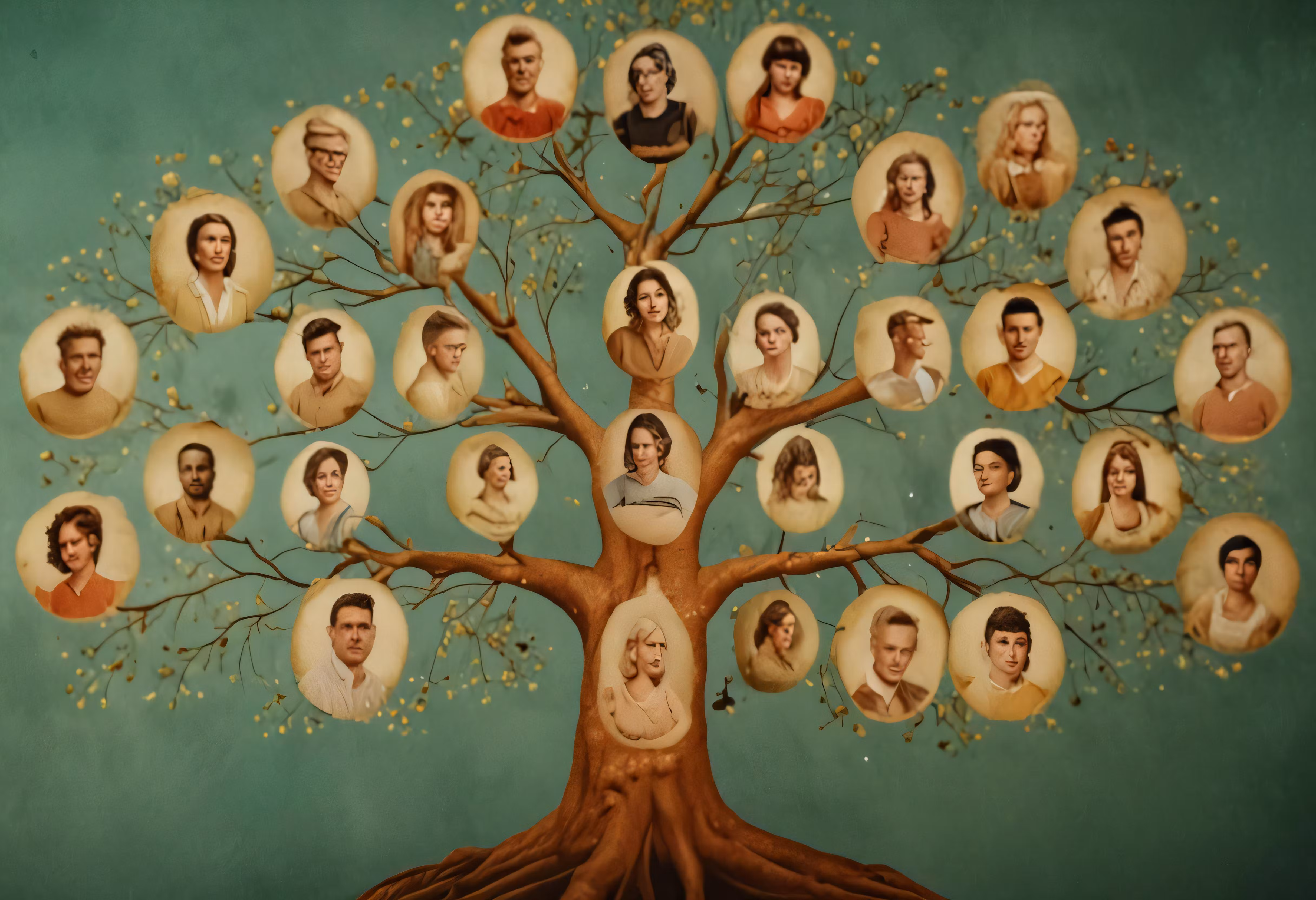 High resolution picture, free to use, a family tree with portraits of those men and women