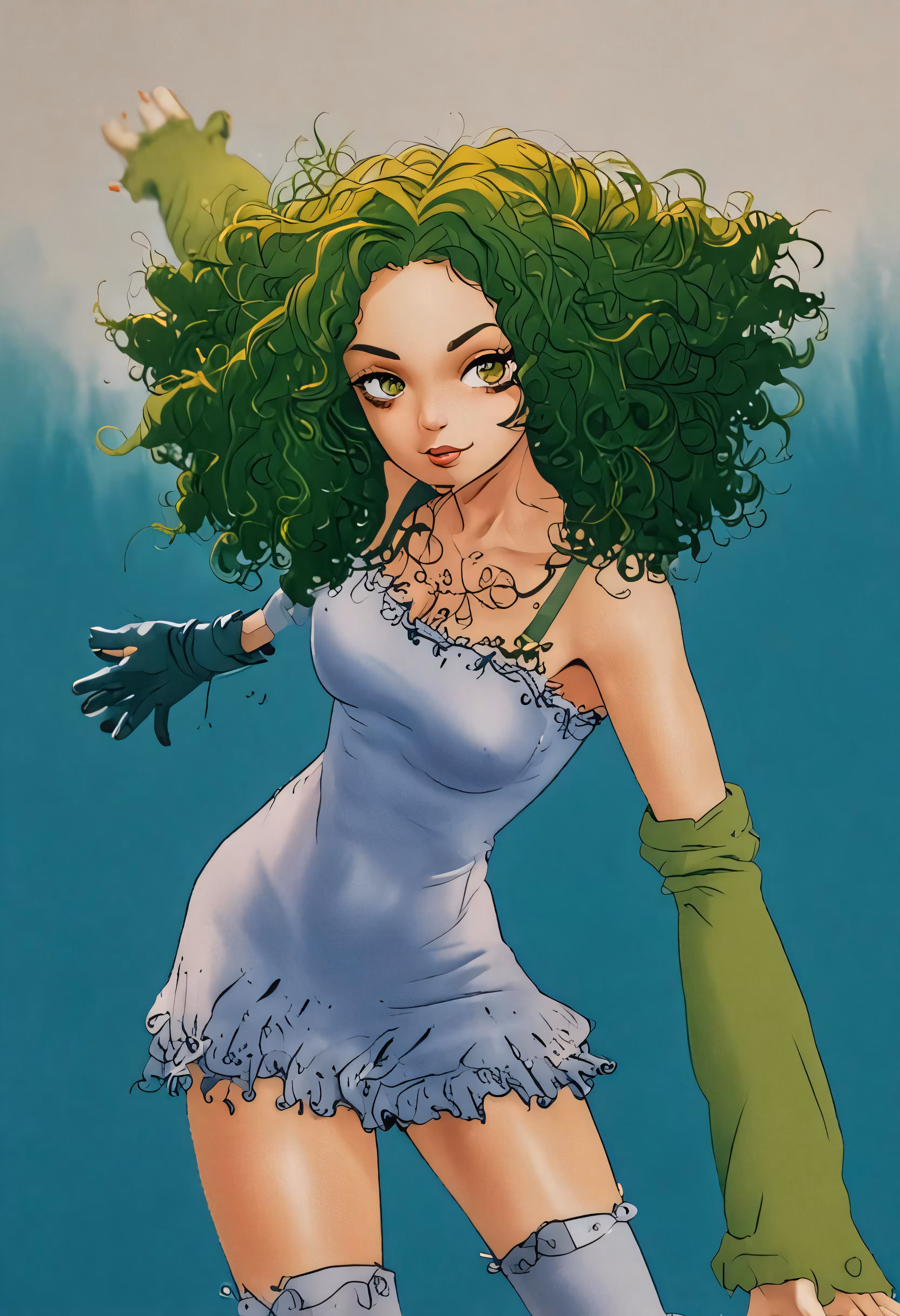 High resolution picture, free to use, a female figure in a white dress wearing green gloves
