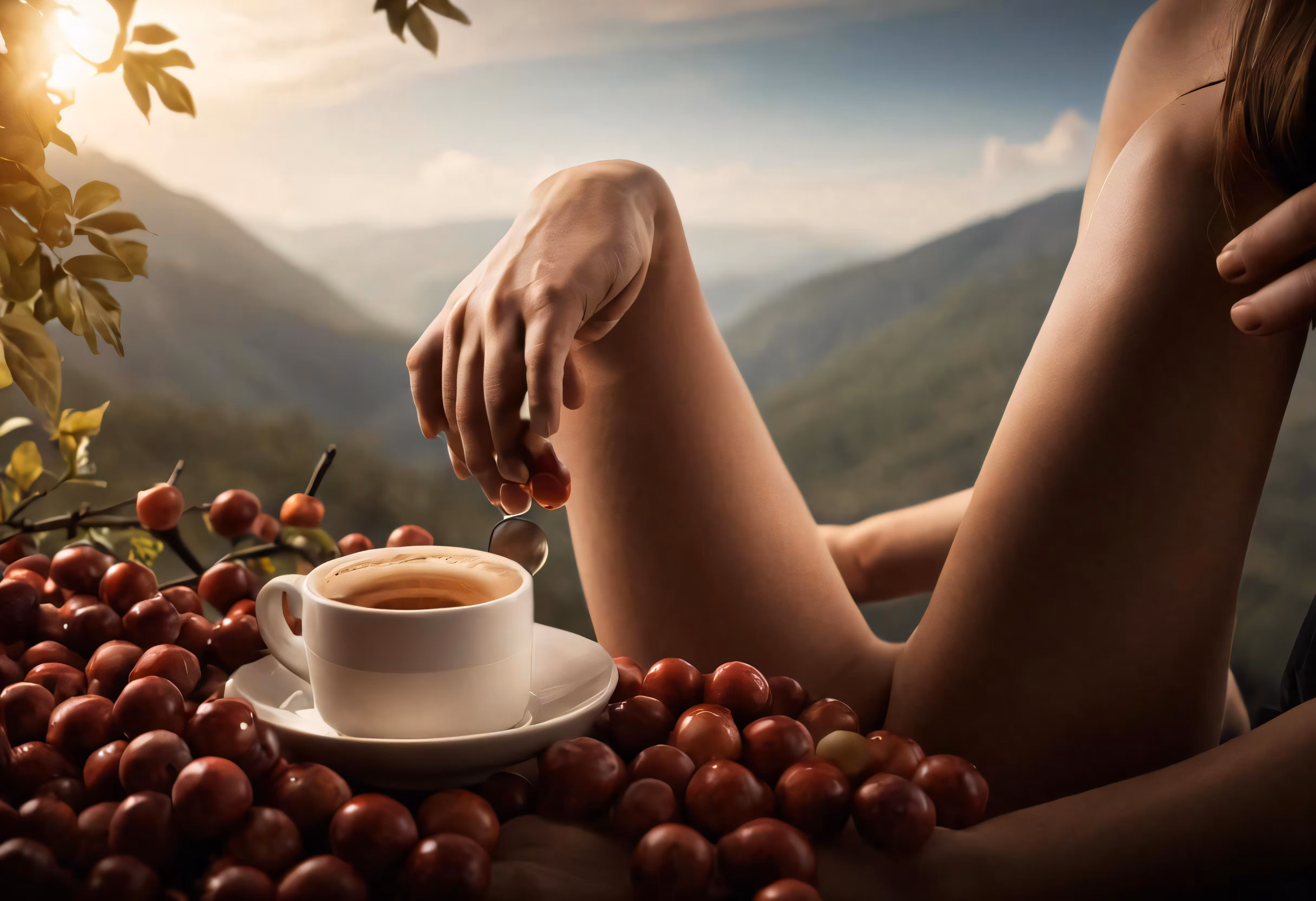 High resolution picture, free to use, a female foot sitting on top of a table filled with coffee