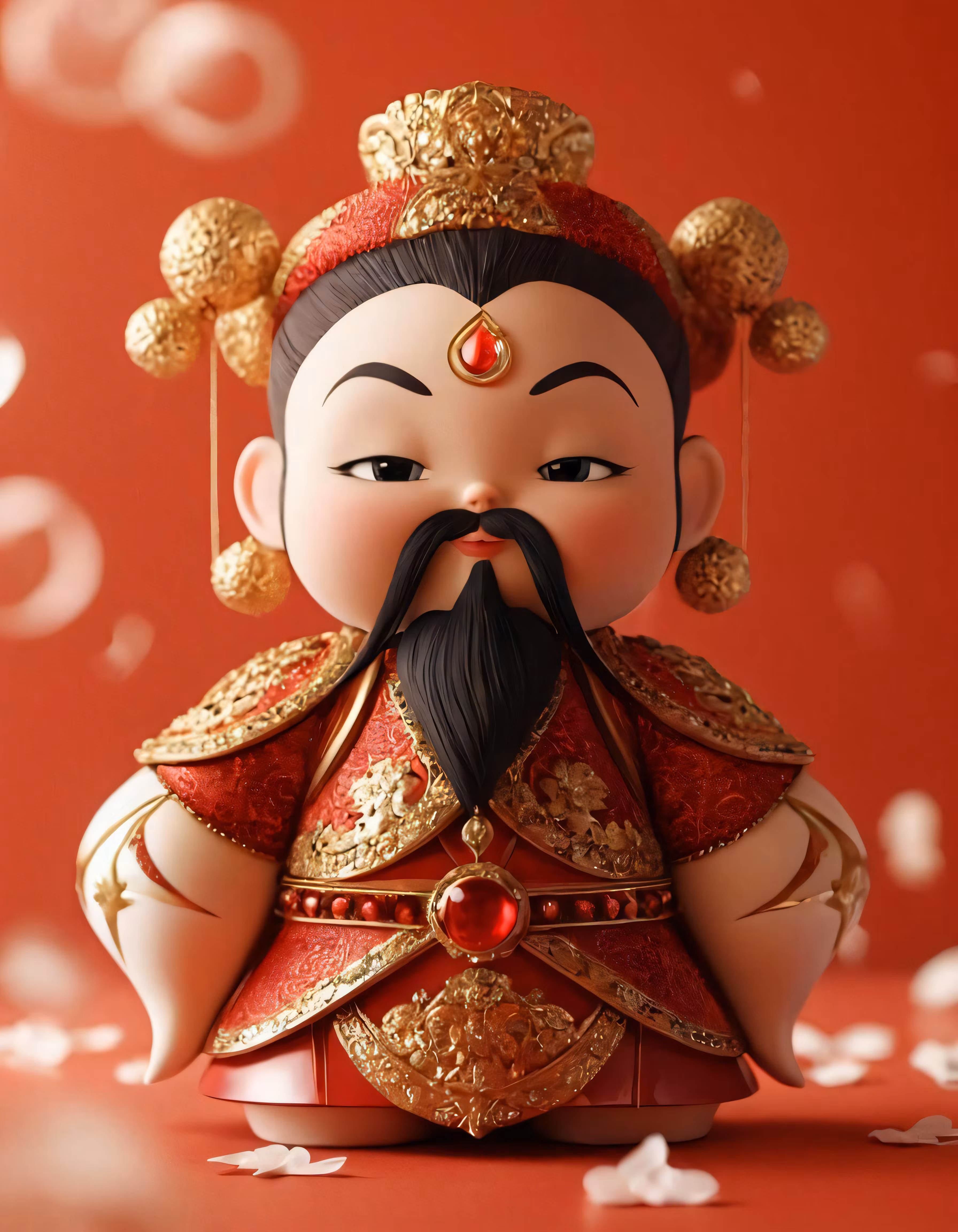 High resolution picture, free to use, a figurine with a fake hair and beard in a red and gold outfit