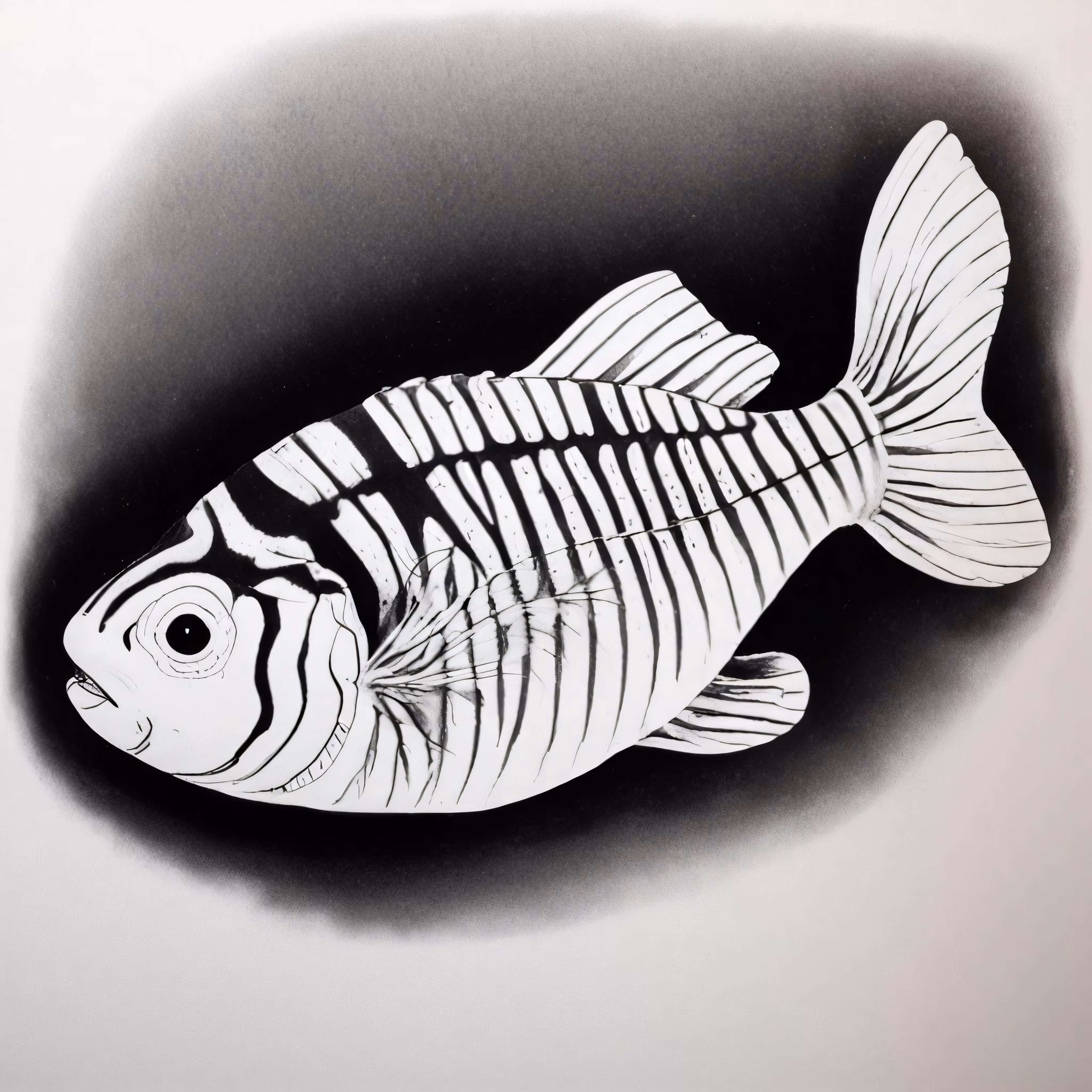 High resolution picture, free to use, a fish in black and white painted on a light grey wall