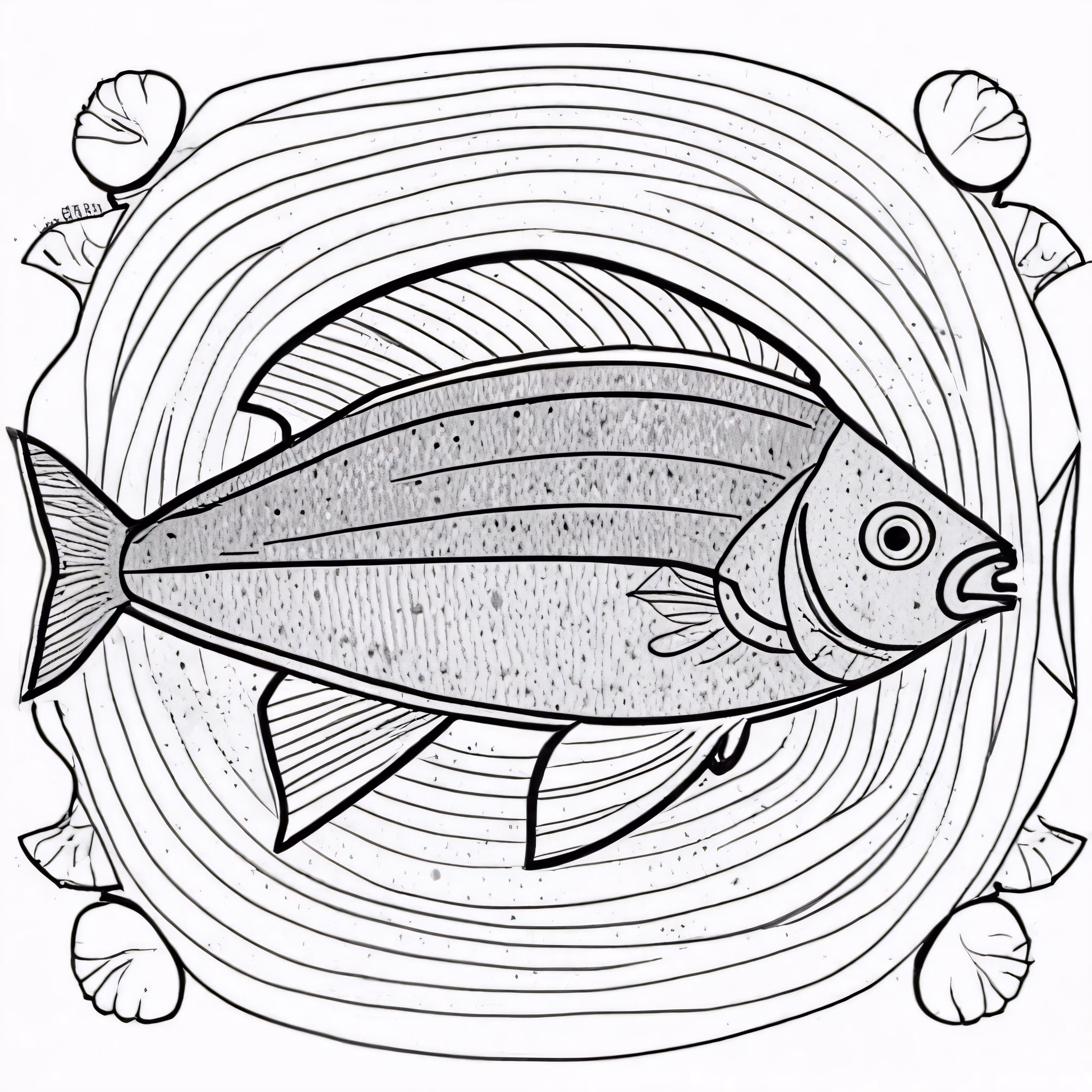High resolution picture, free to use, a fish on a spirally circular pattern