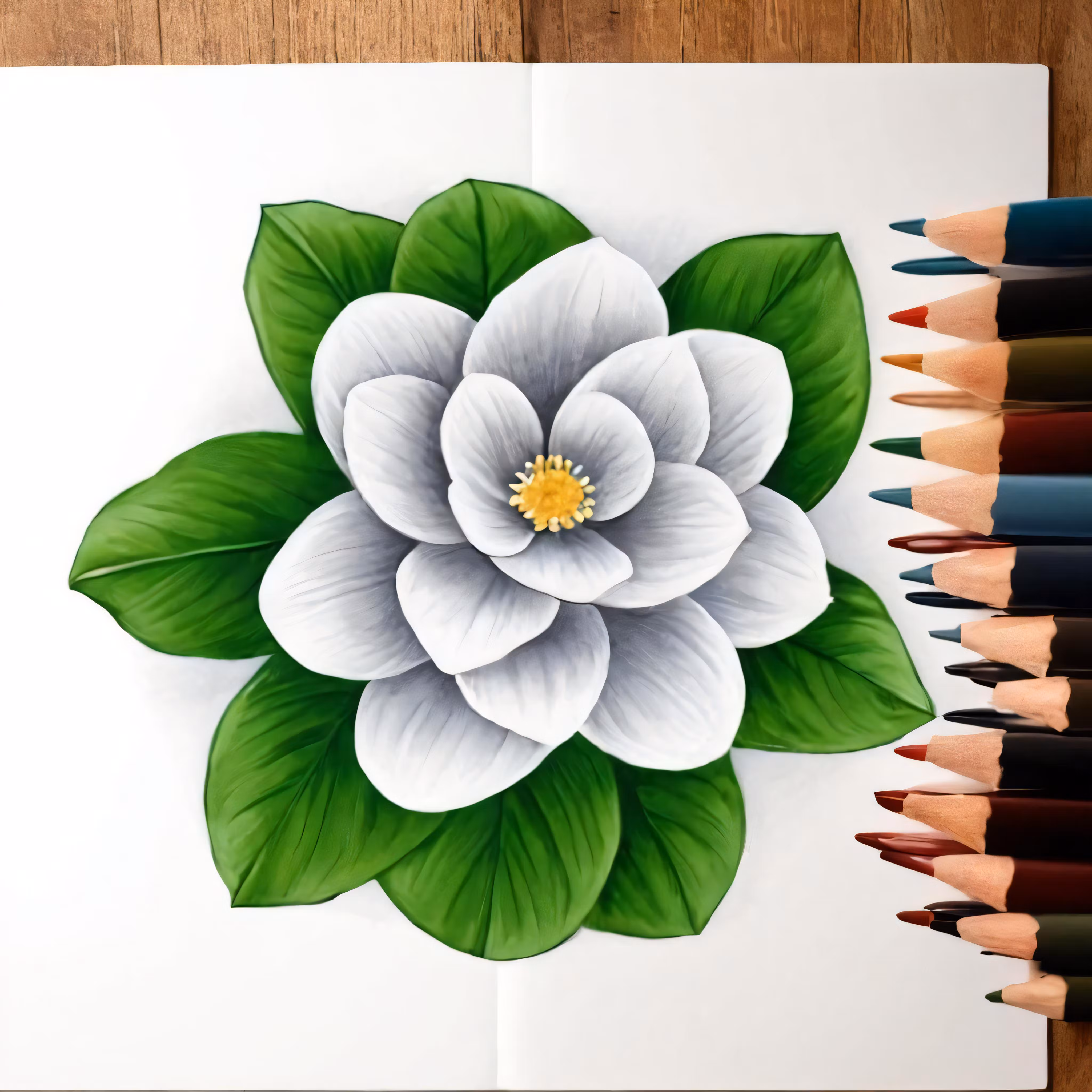 High resolution picture, free to use, a flower drawn on paper with some colored pencils