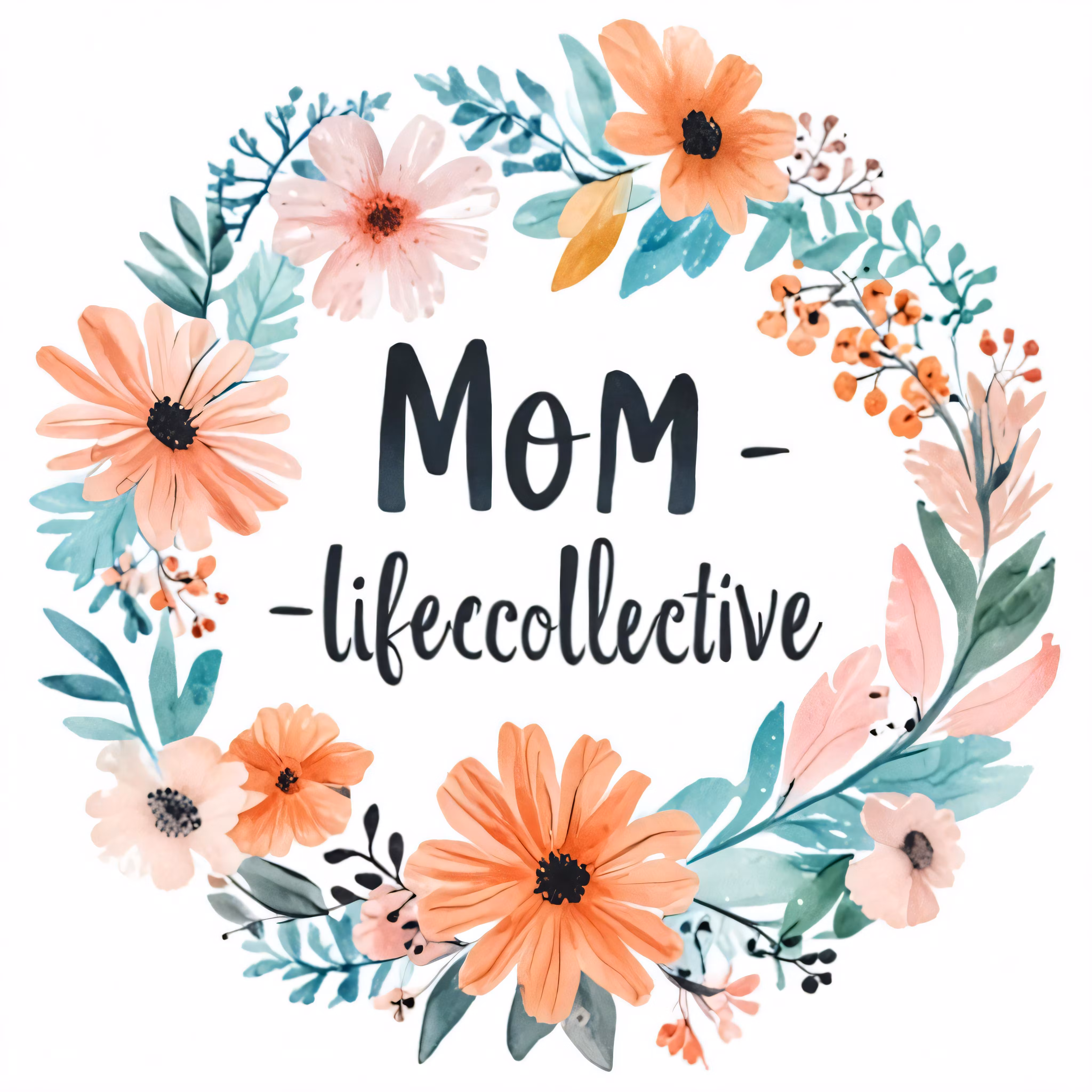High resolution picture, free to use, a flower wreath with the words mom lifecollieve written in the center