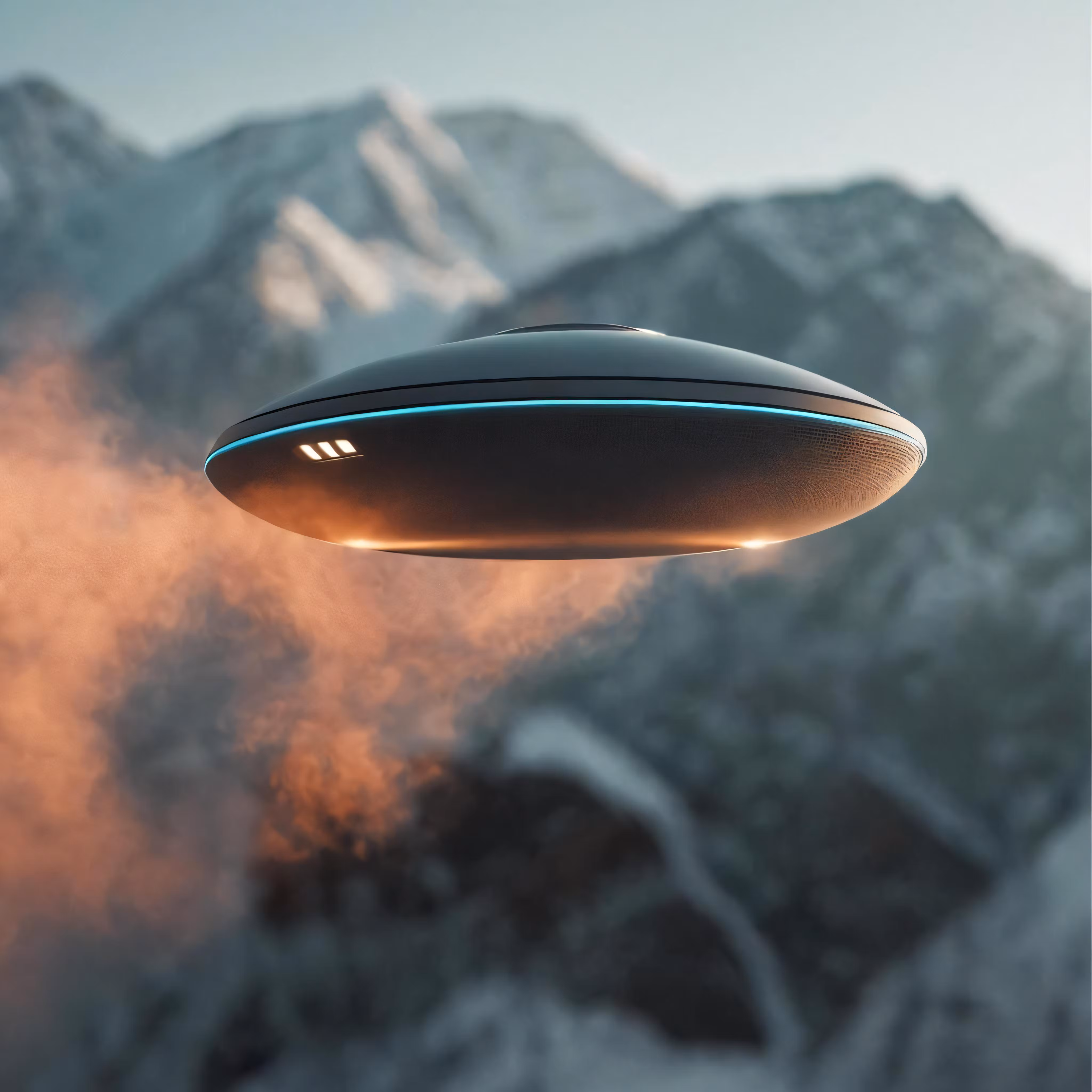 High resolution picture, free to use, a flying object over a mountain and cloud filled sky
