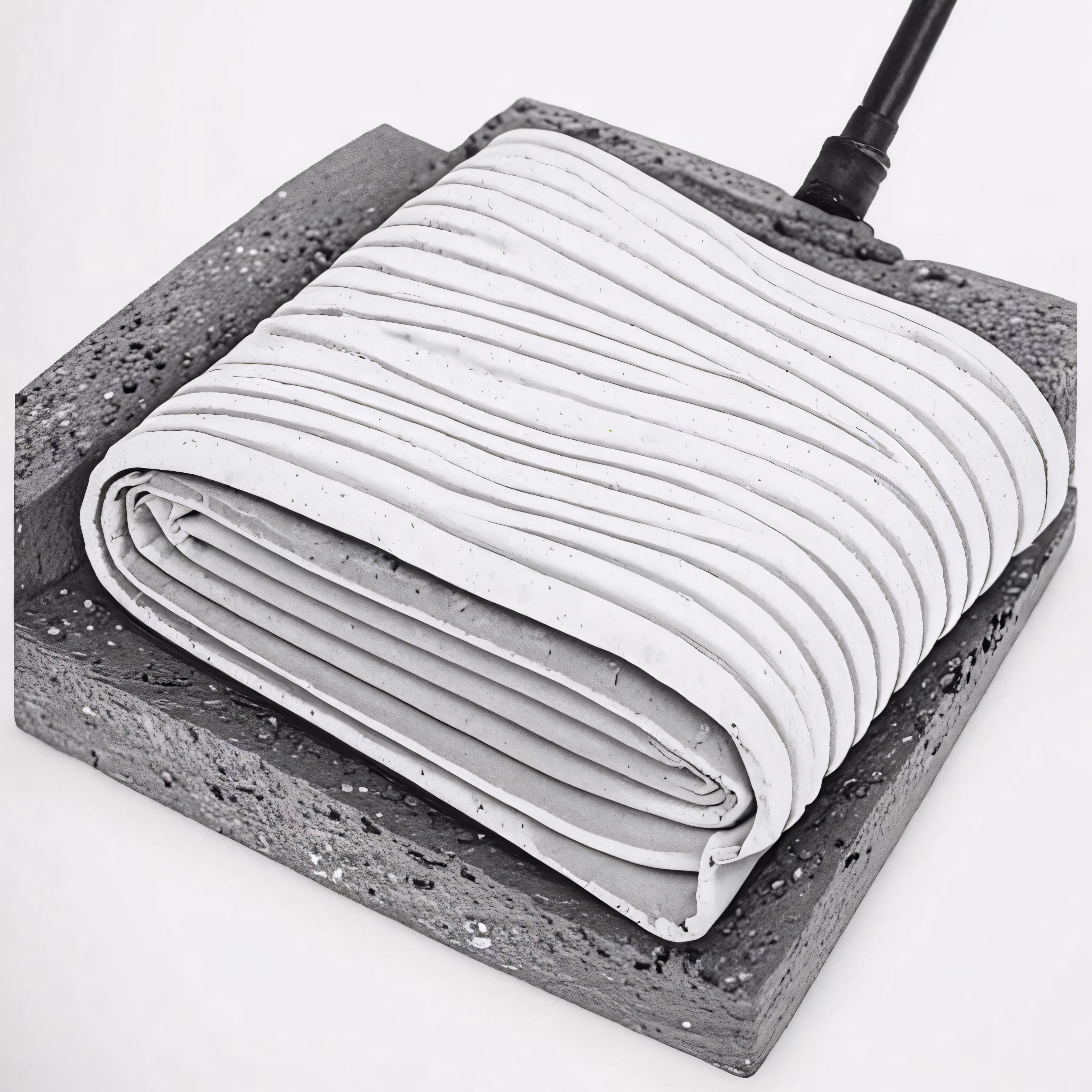 High resolution picture, free to use, a folded blanket sitting on top of a stone block
