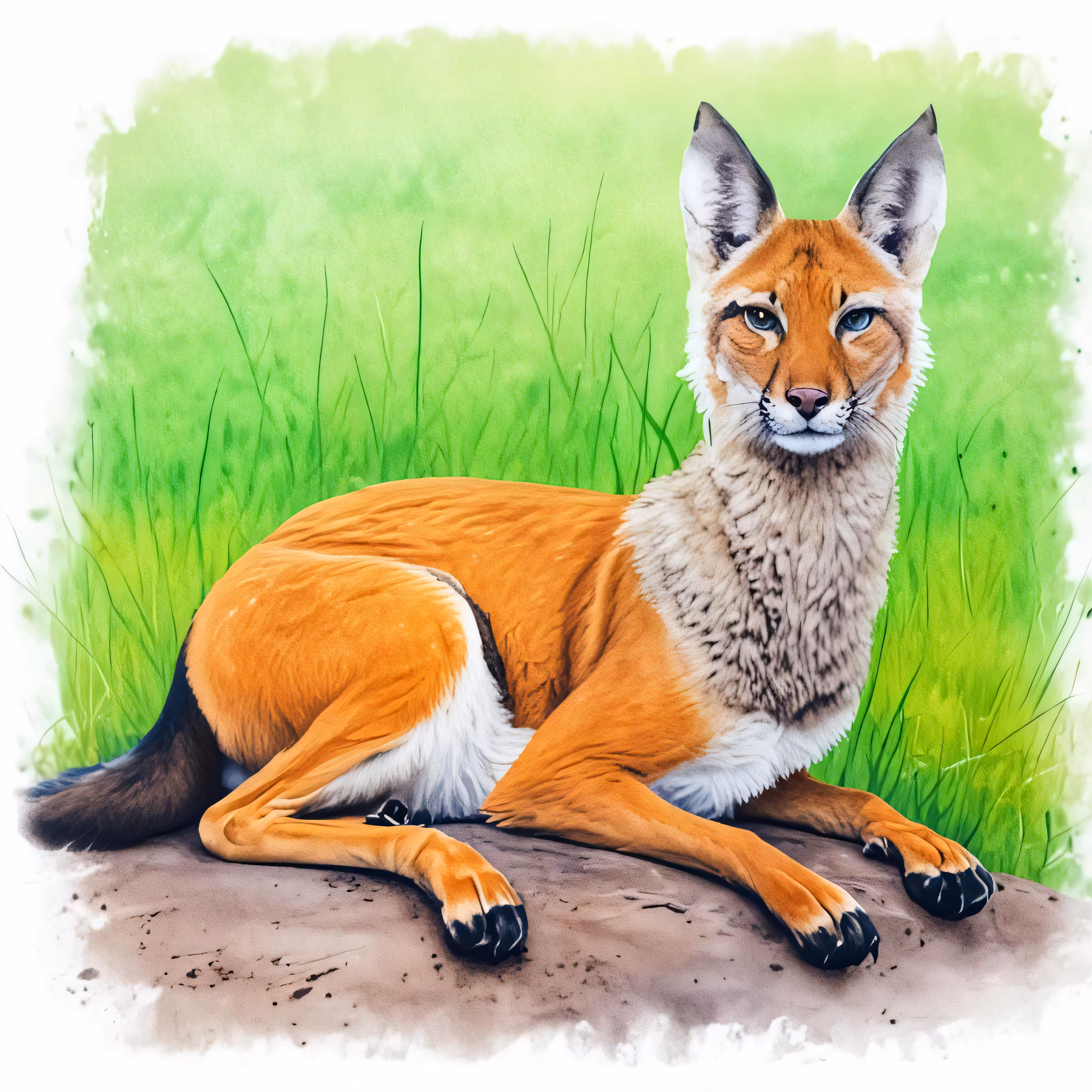 High resolution picture, free to use, a fox laying in the grass in front of some tall grass