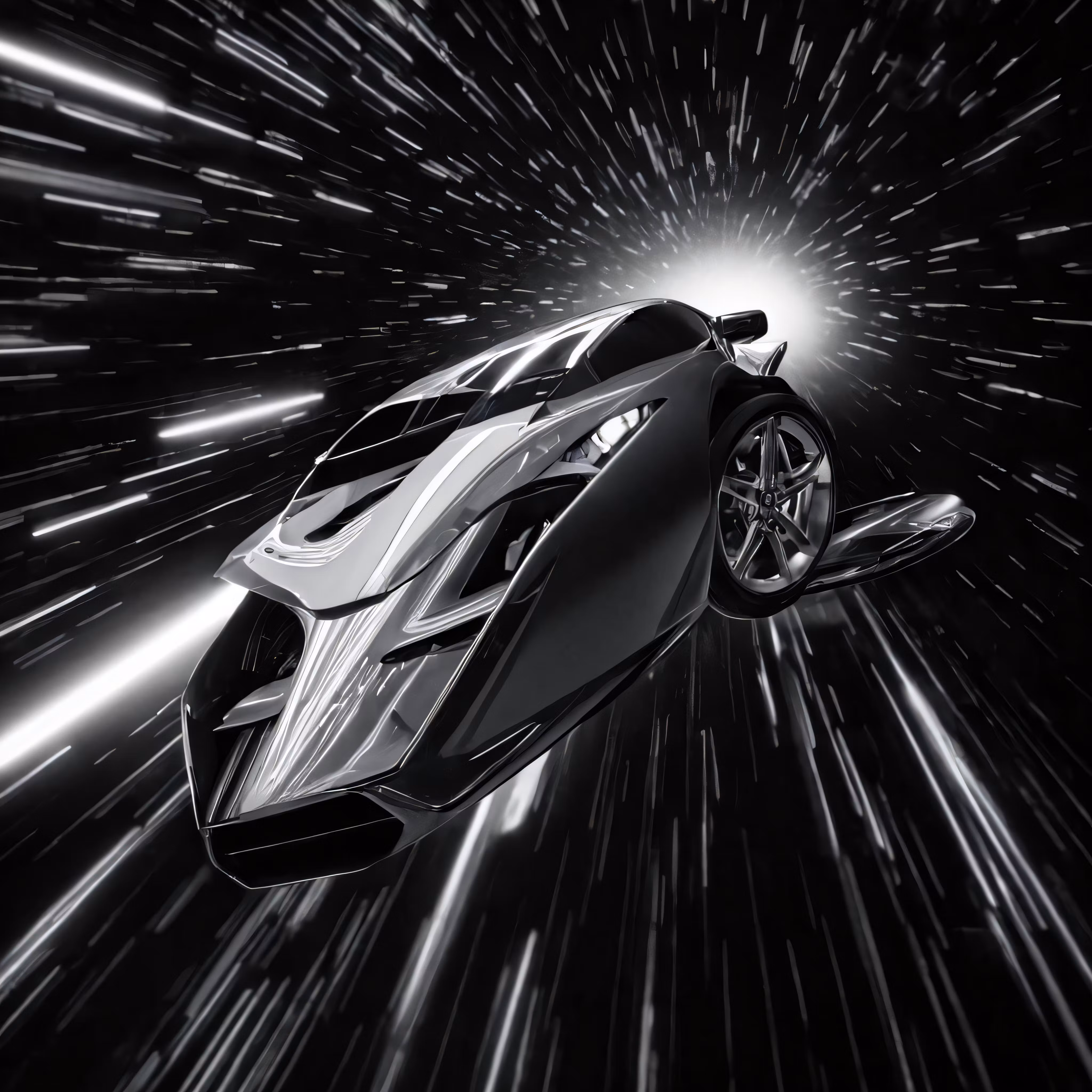 High resolution picture, free to use, a futuristic car that is flying through the air