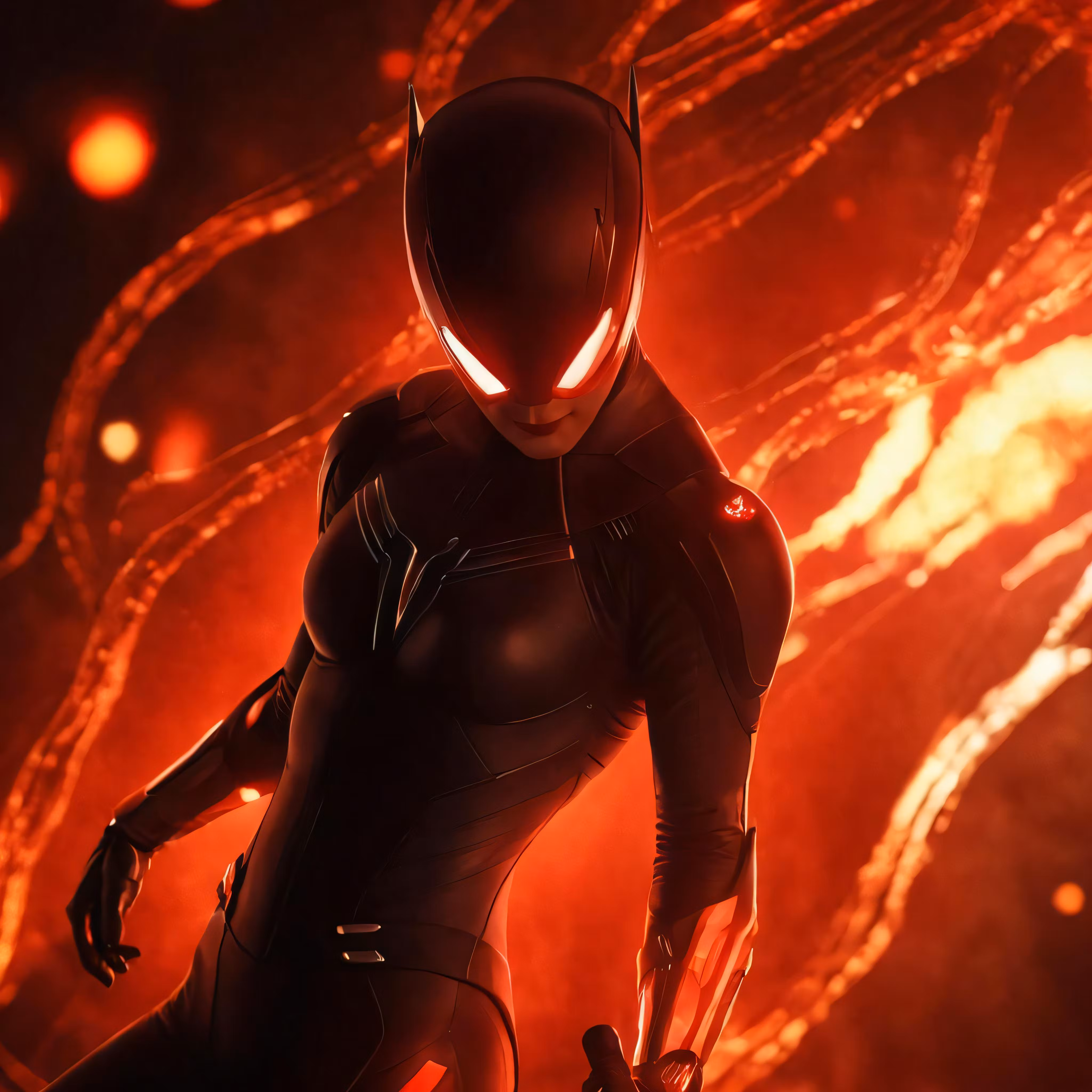 High resolution picture, free to use, a futuristic man standing next to a red wall