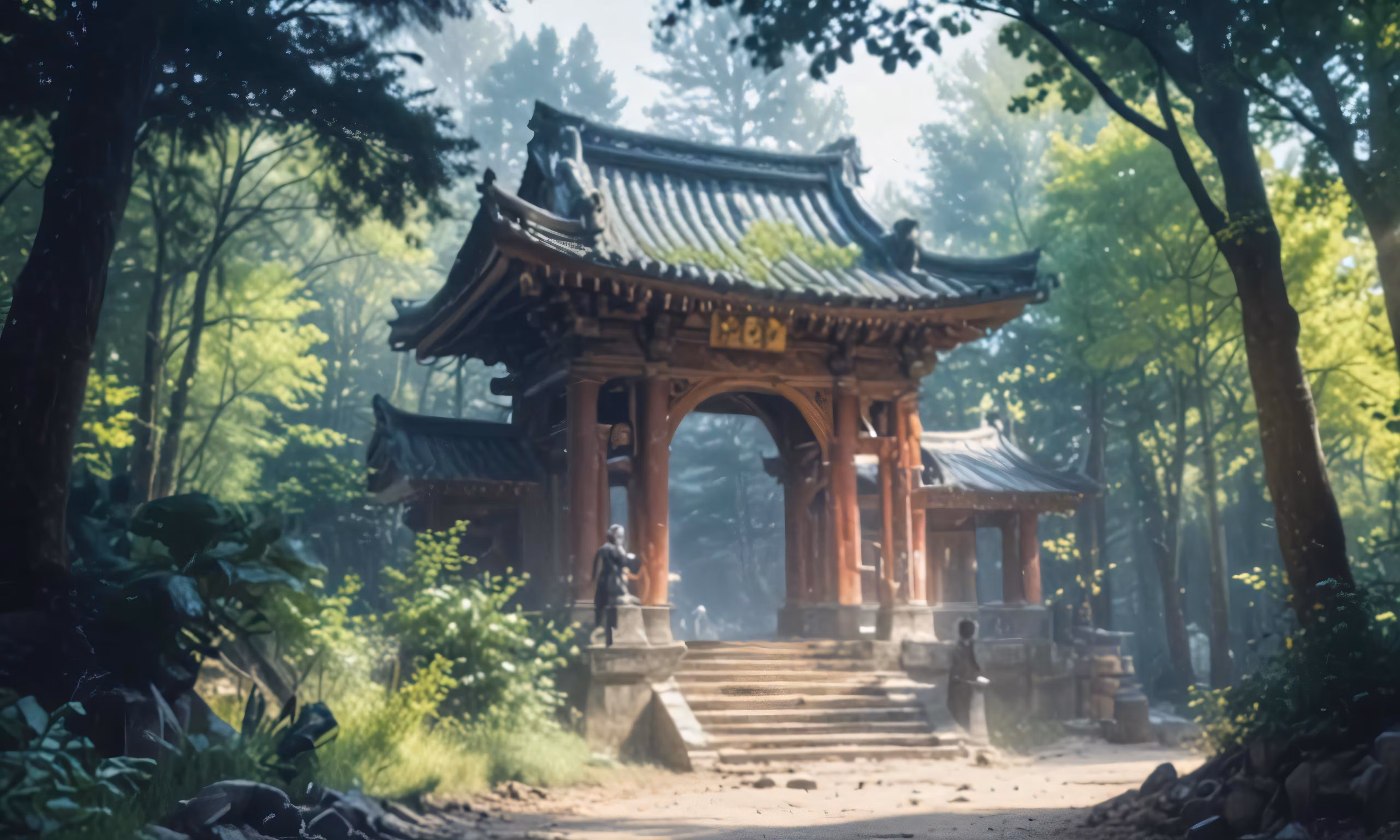 High resolution picture, free to use, a gazebo sits among the trees and a path