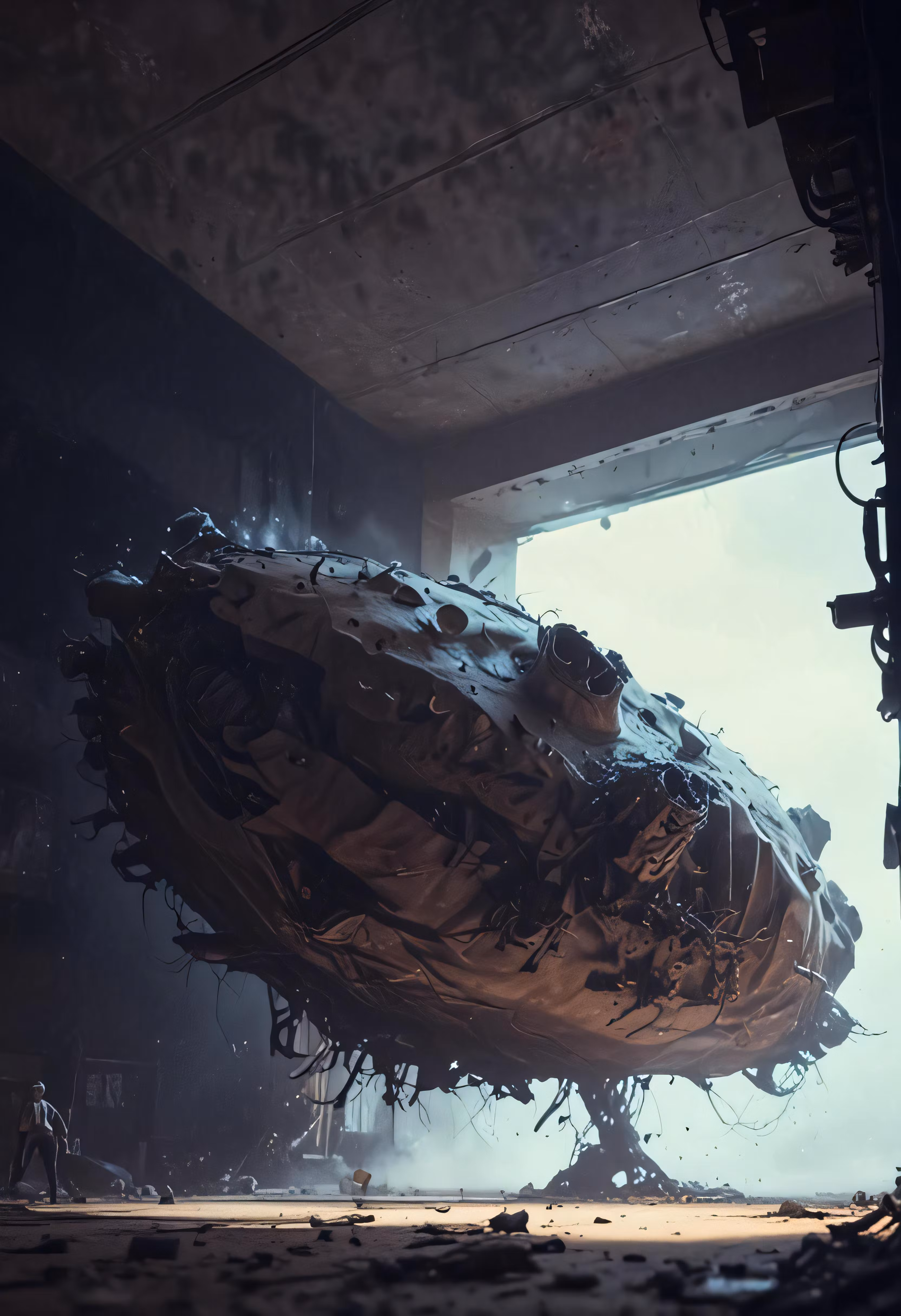 High resolution picture, free to use, a giant metal object in the middle of a room