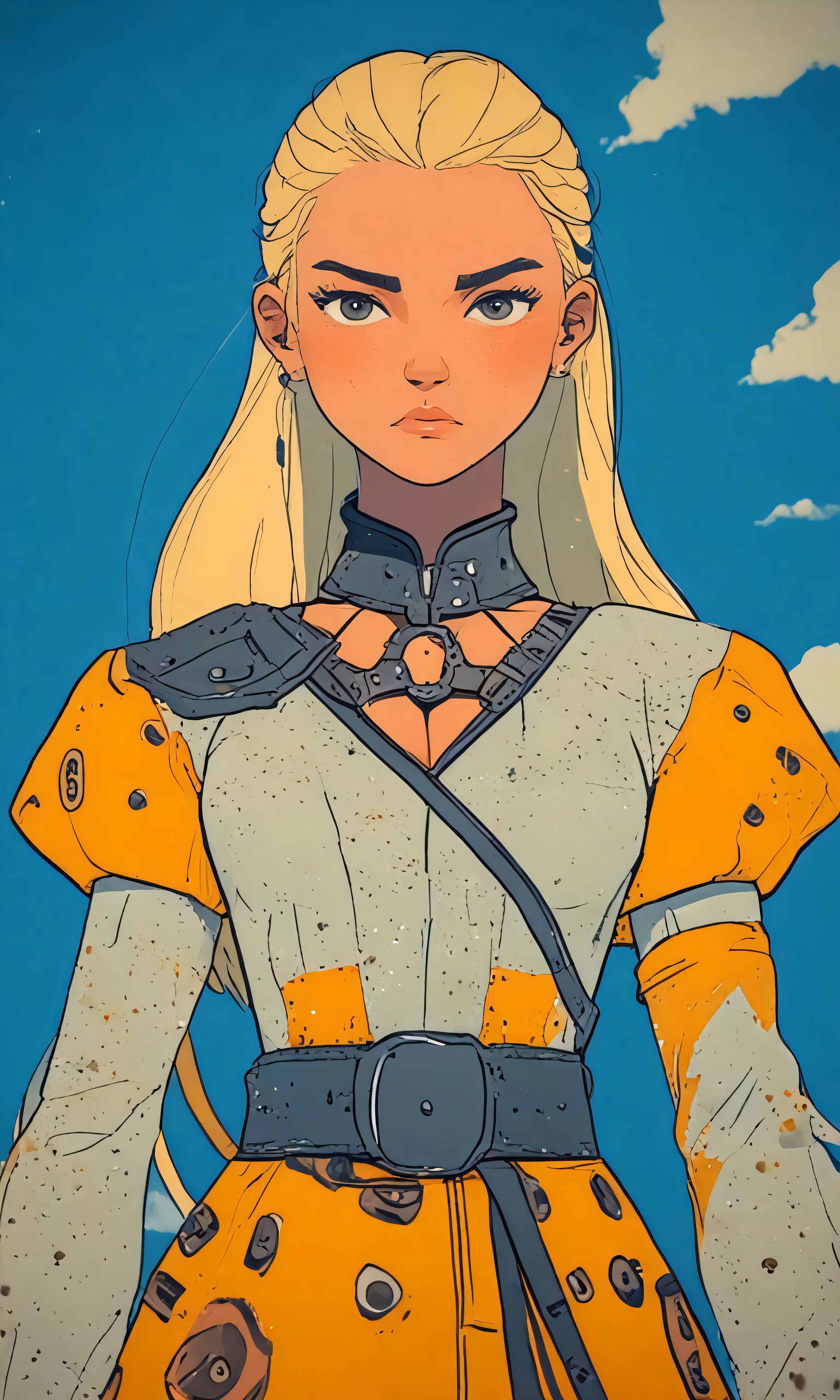 High resolution picture, free to use, a girl dressed up in yellow and white with an orange dress
