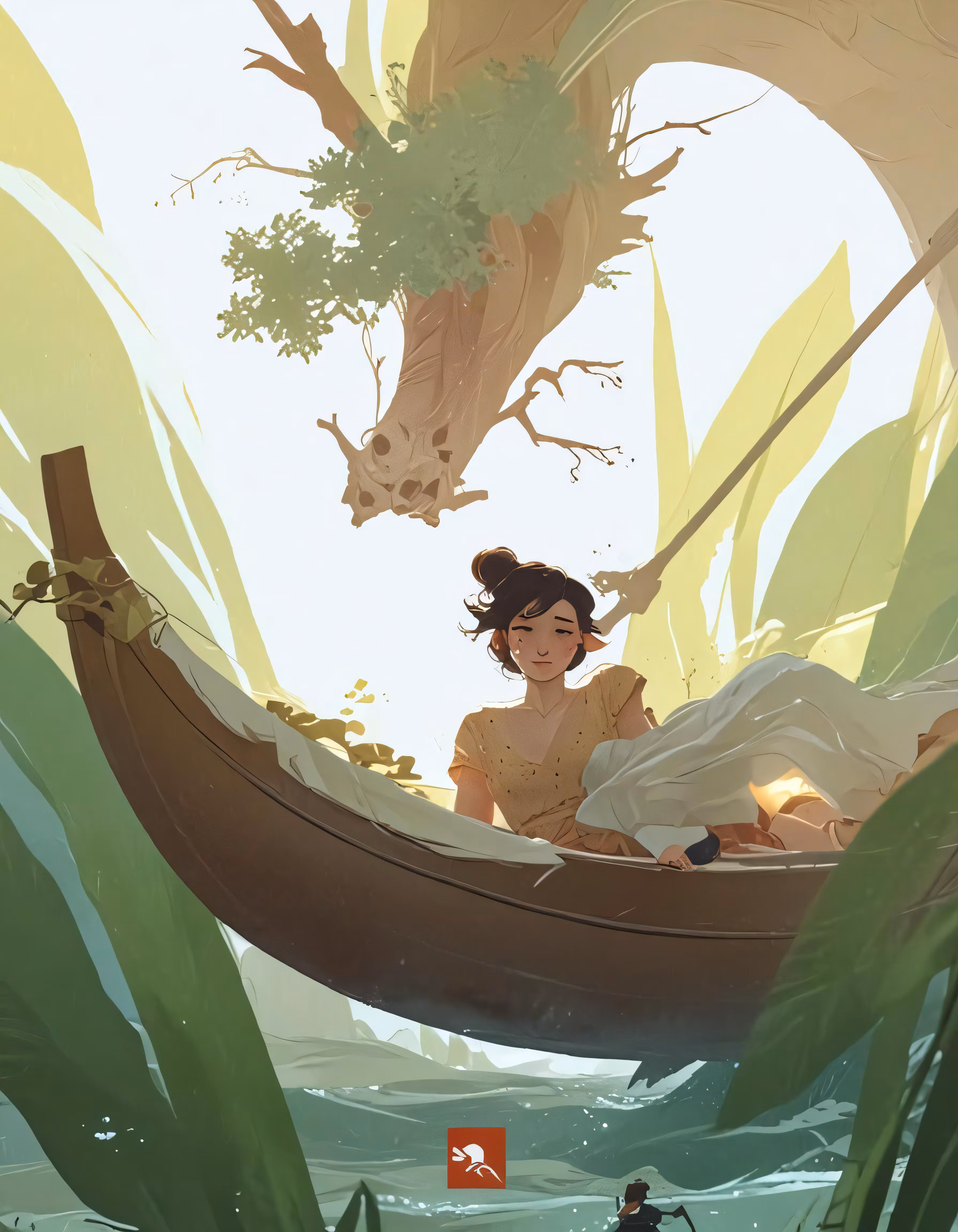 High resolution picture, free to use, a girl in a boat sitting on top of grass
