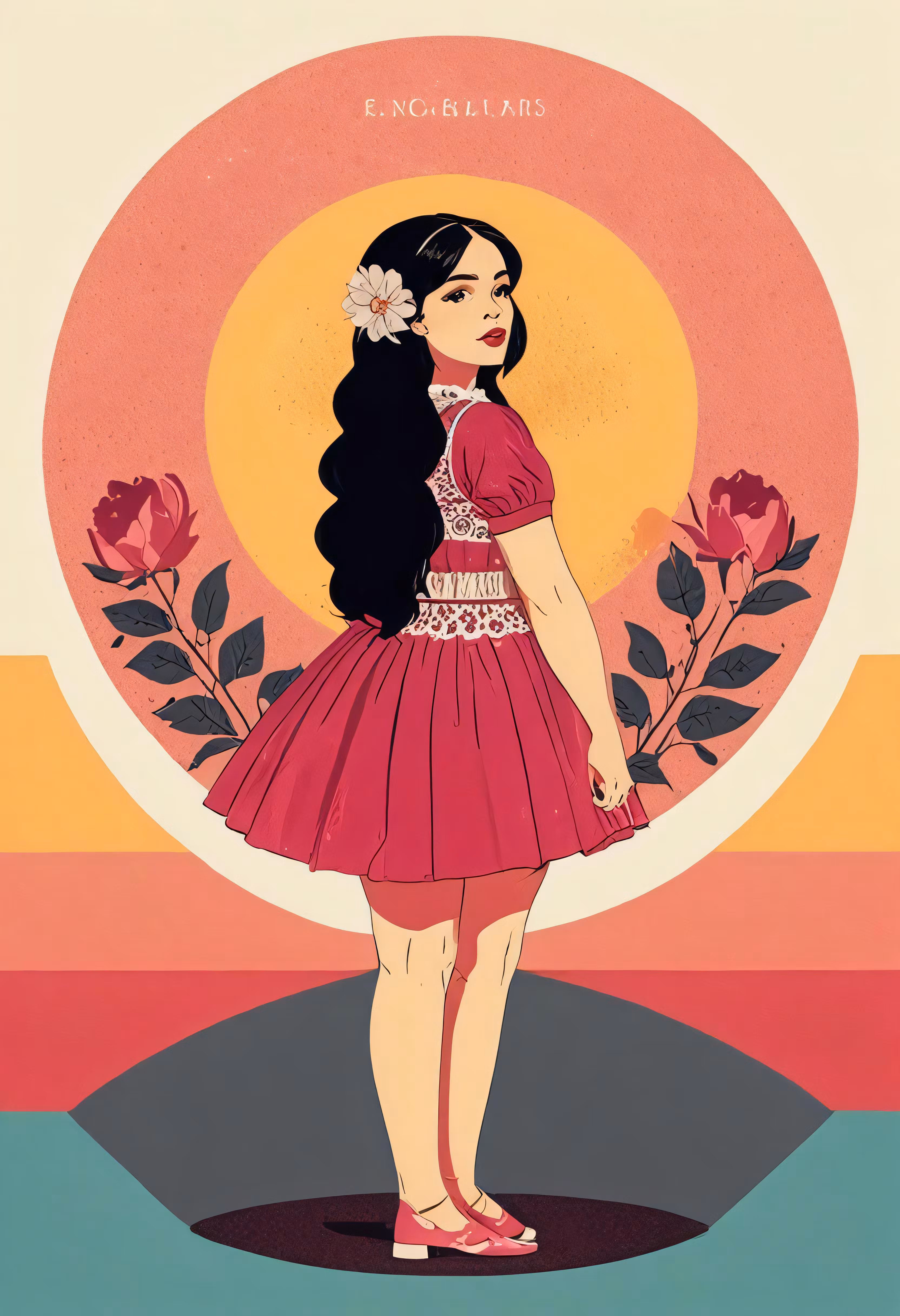 High resolution picture, free to use, a girl in a red dress standing next to a sunset