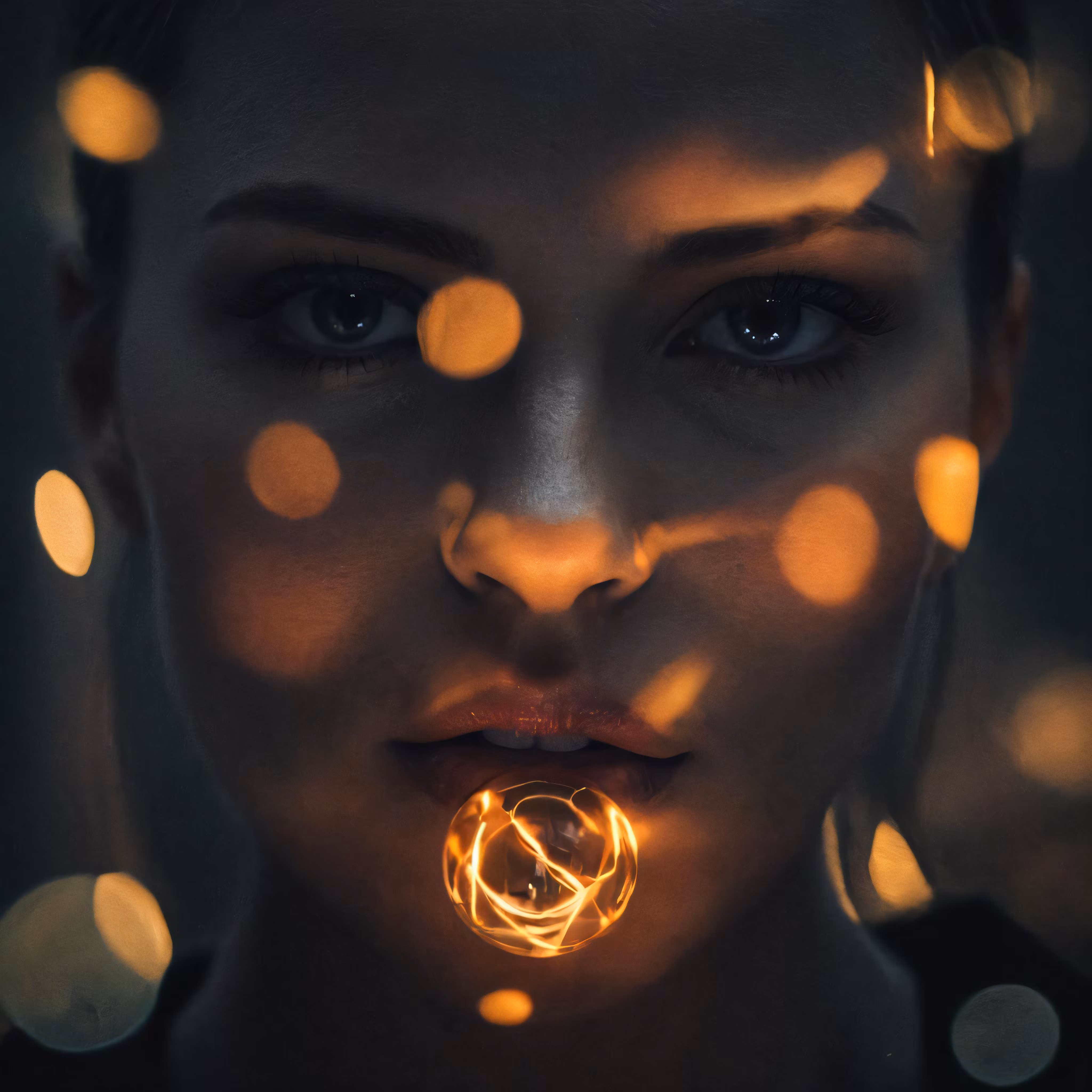 High resolution picture, free to use, a girl in light is illuminated by her face and eyes