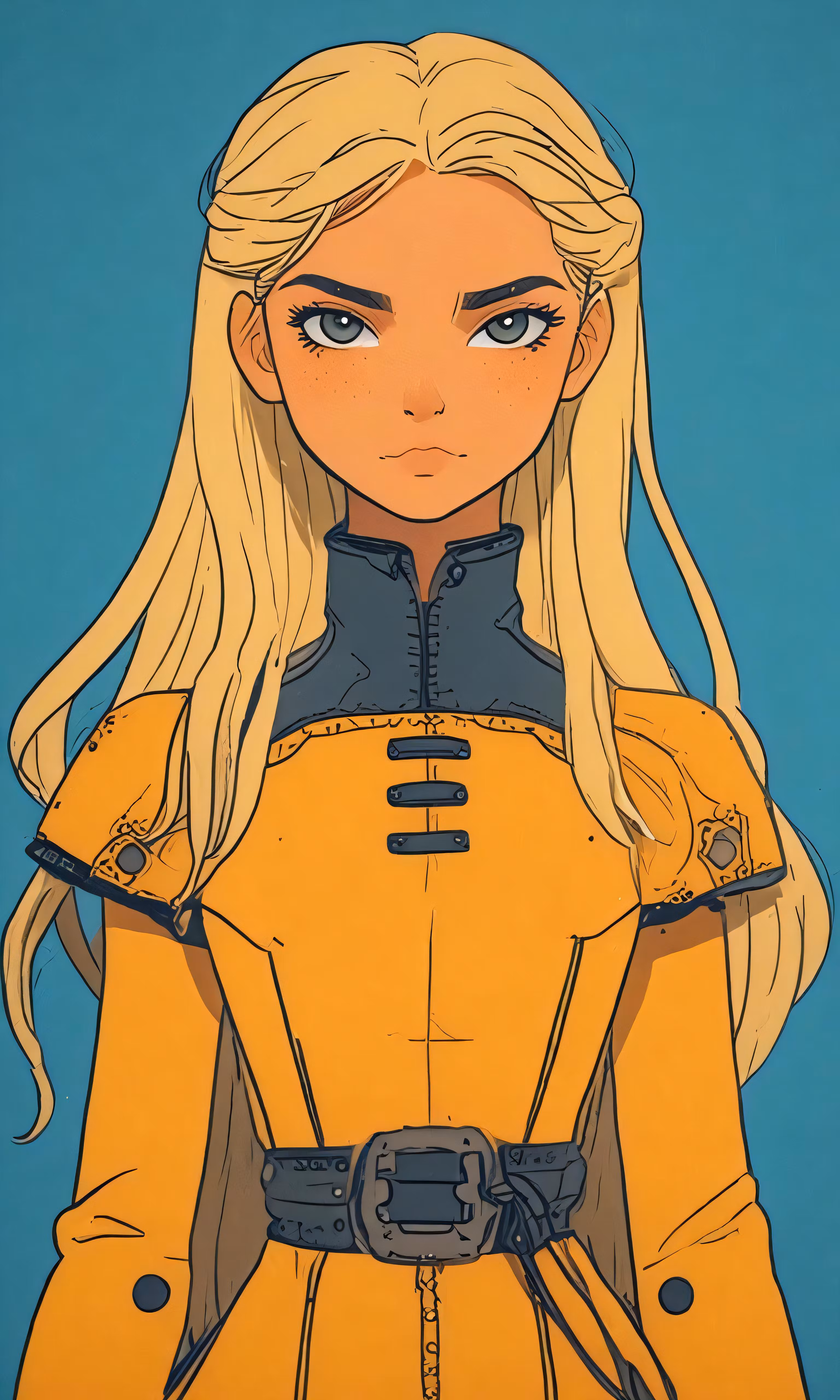 High resolution picture, free to use, a girl in yellow jacket, blue background