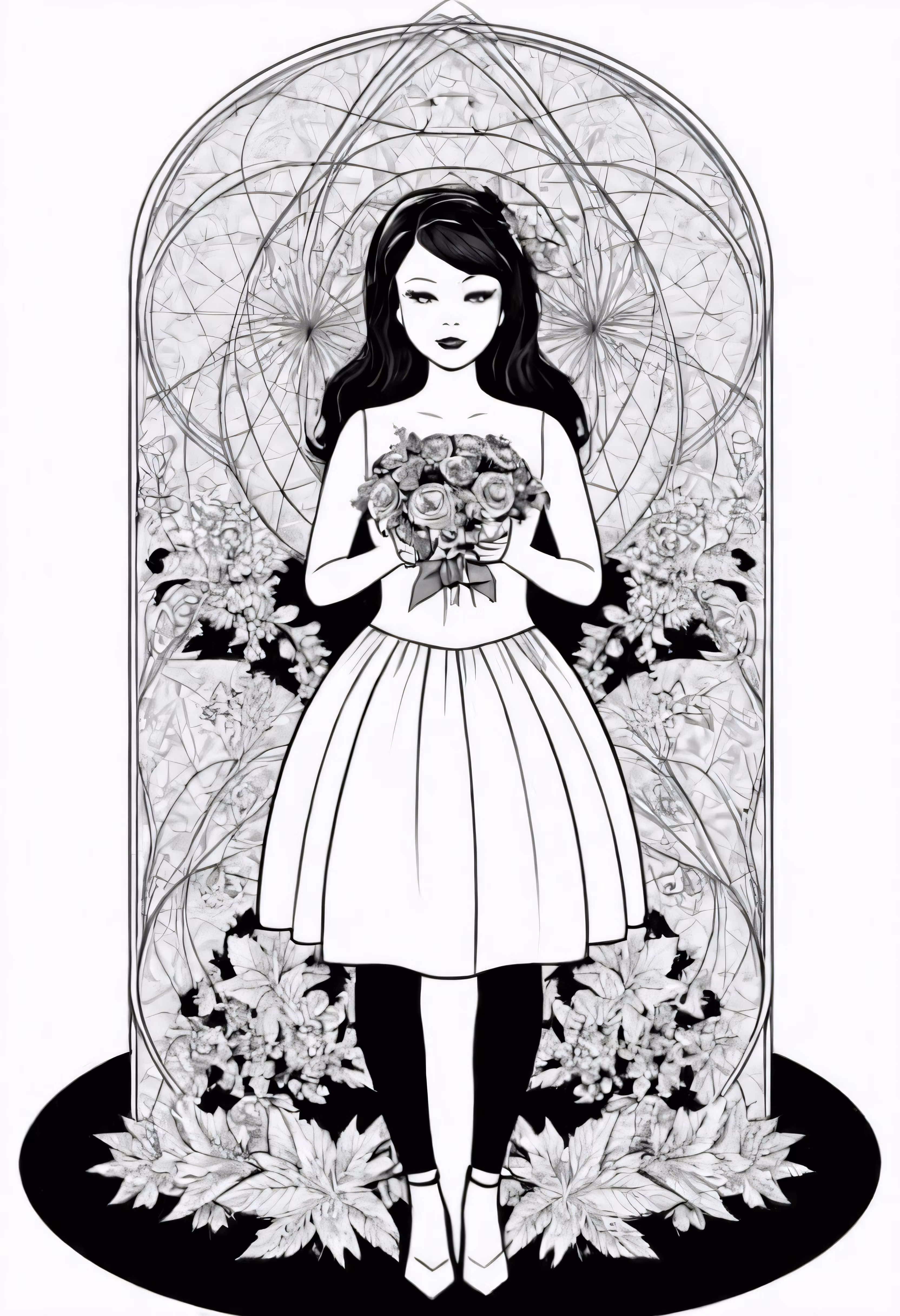 High resolution picture, free to use, a girl is holding flowers on the cover of an art work