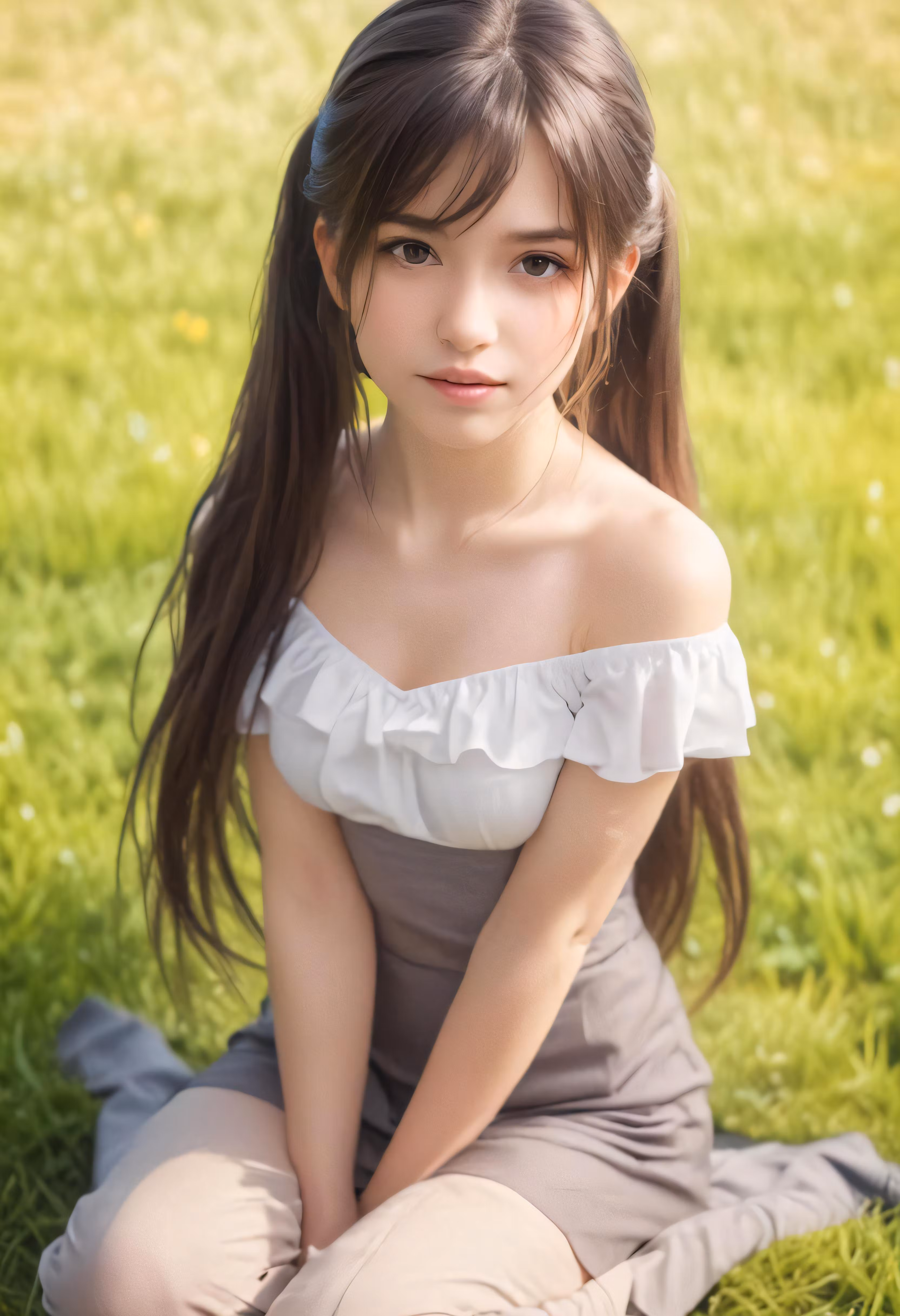 High resolution picture, free to use, a girl is posing on the ground for a photo