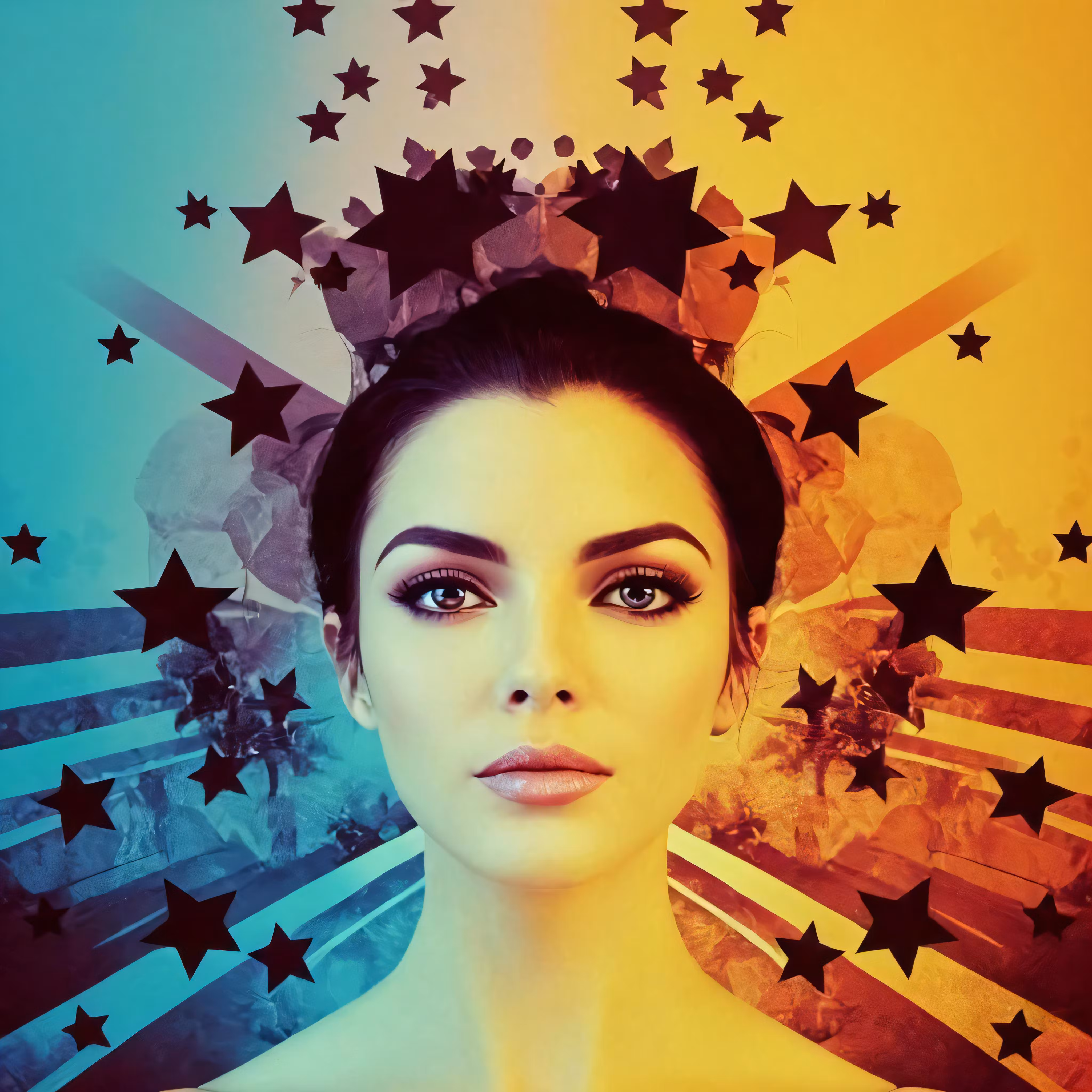 High resolution picture, free to use, a girl is posing with star shapes above her head