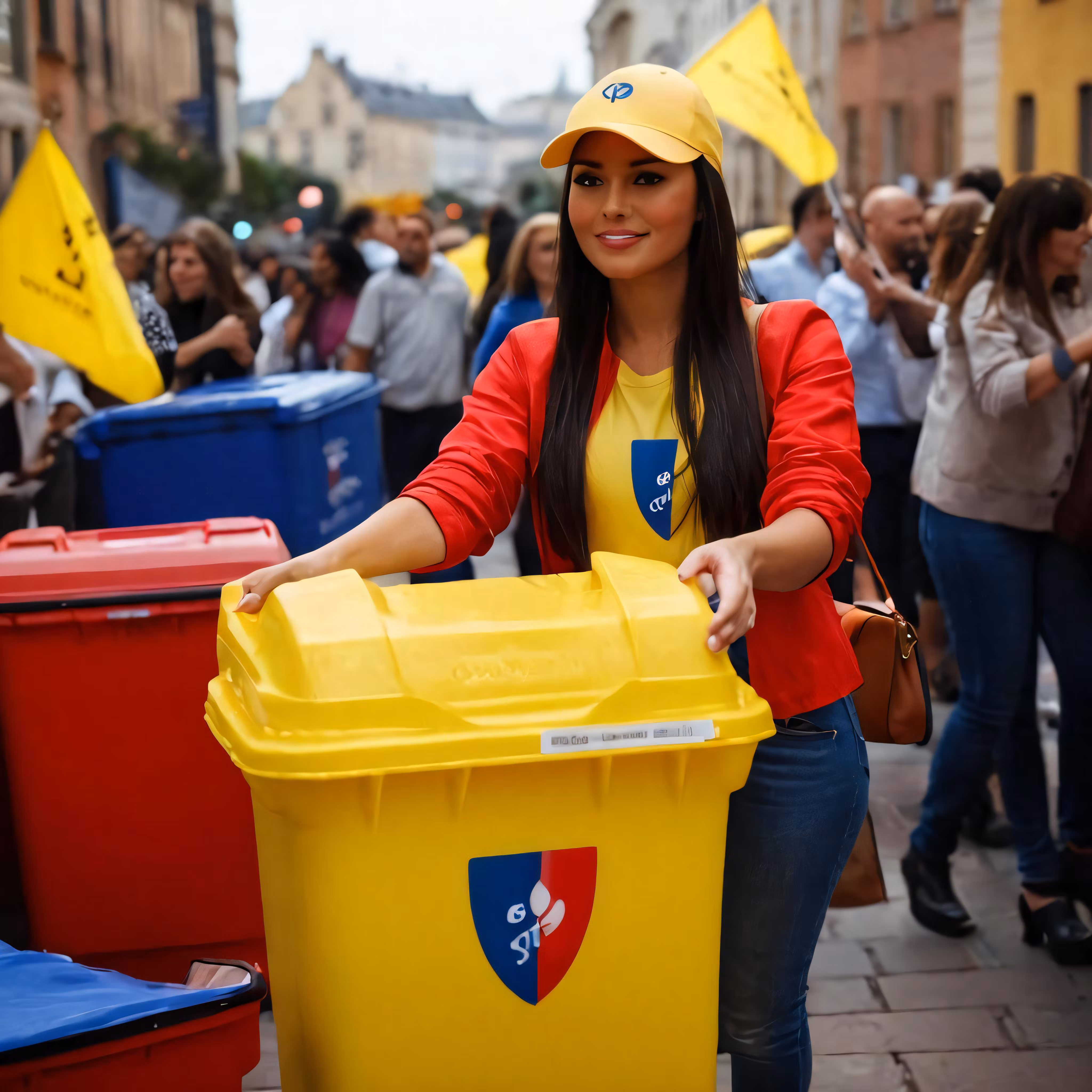 High resolution picture, free to use, a girl is pushing a plastic box out to the street