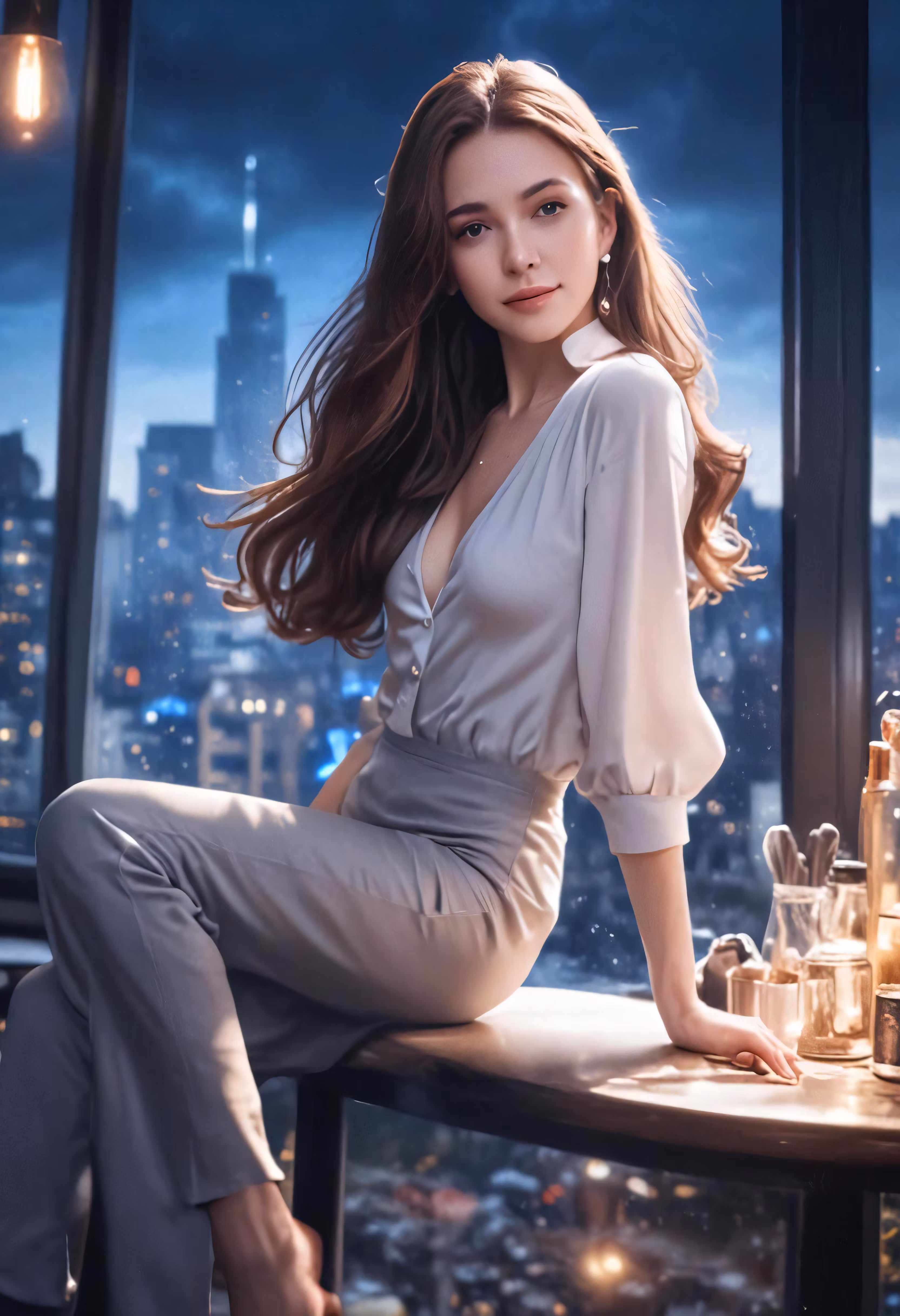 High resolution picture, free to use, a girl posing for a photo in a restaurant