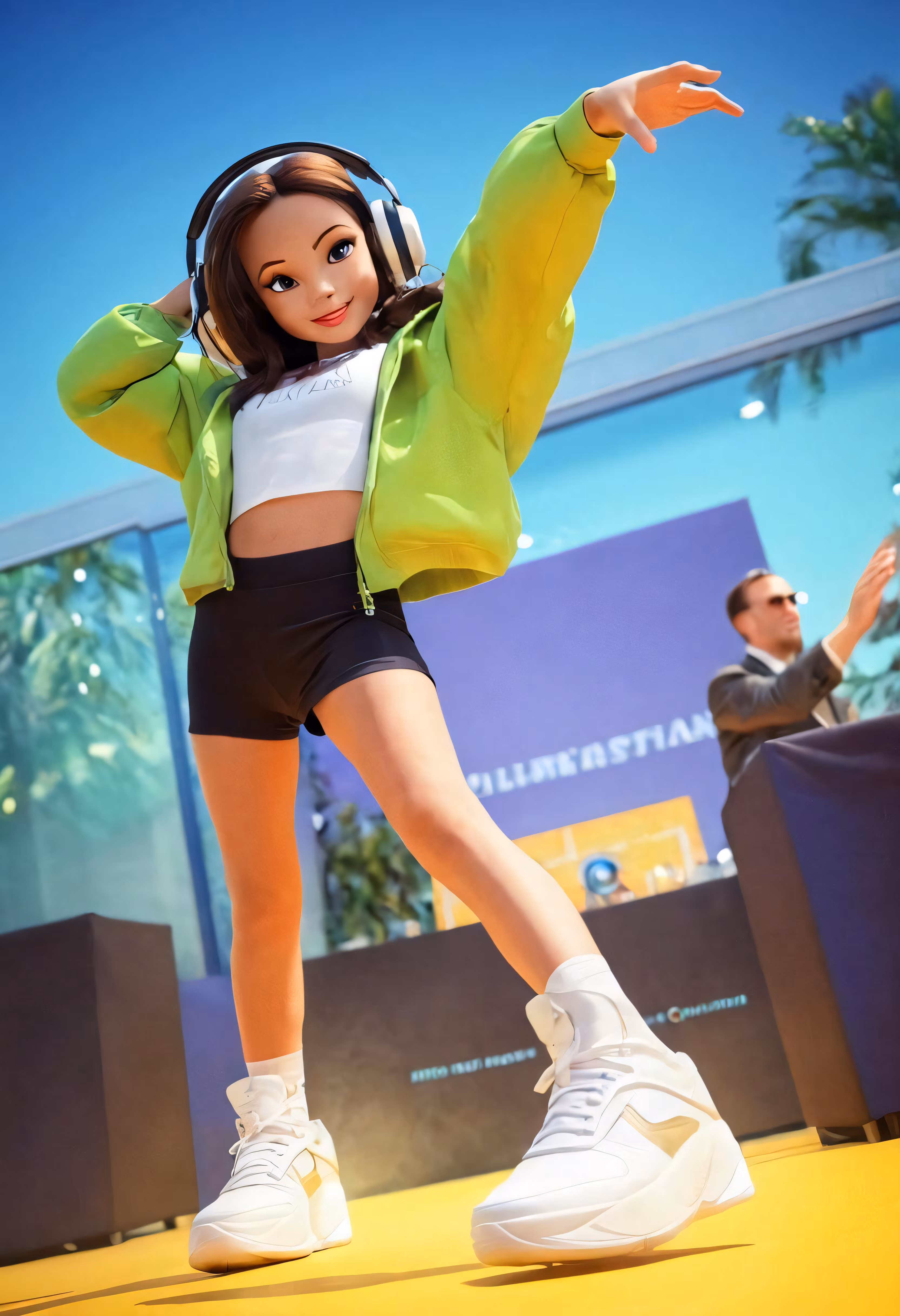 High resolution picture, free to use, a girl posing for a photo while wearing headphones