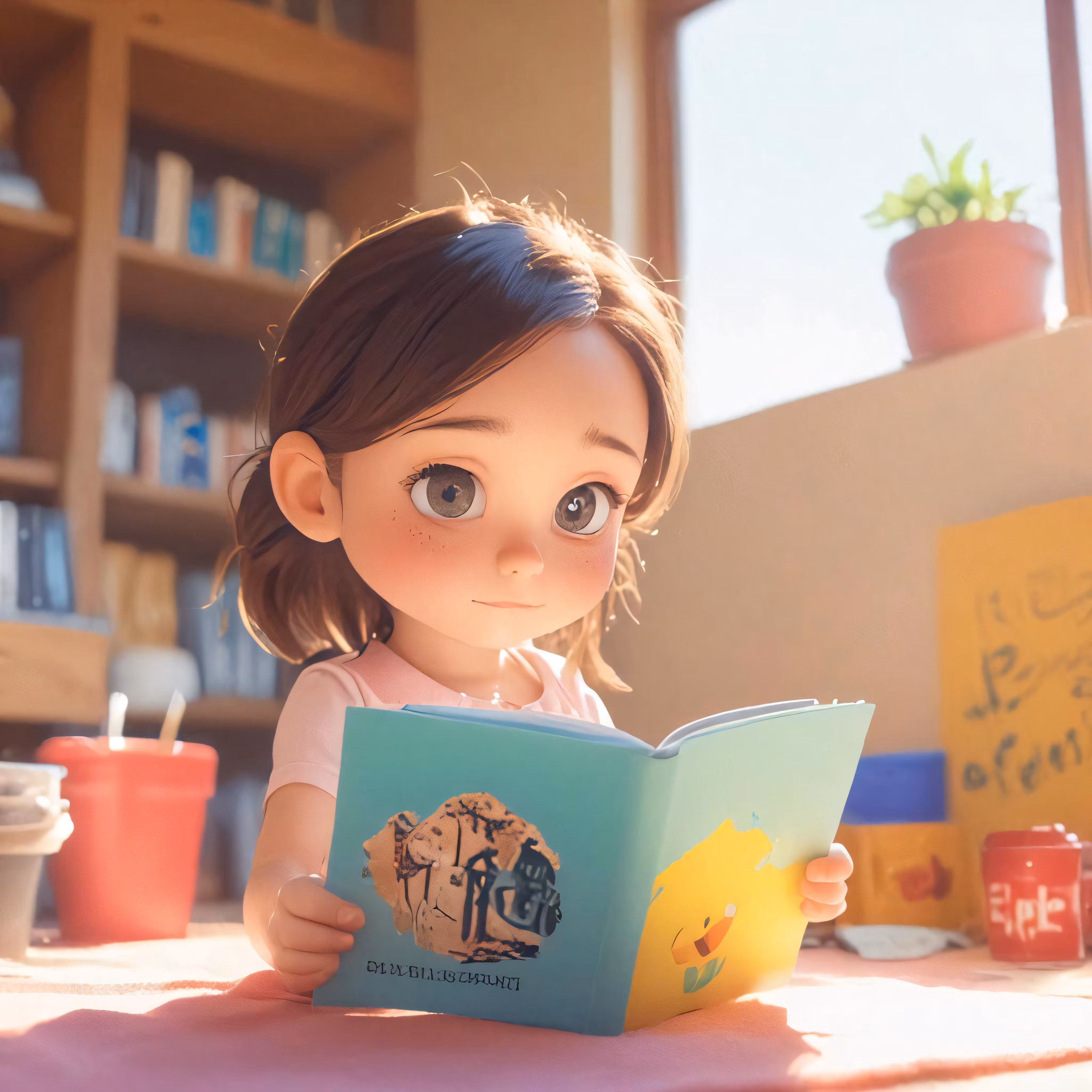 High resolution picture, free to use, a girl sitting at a table and reading a book