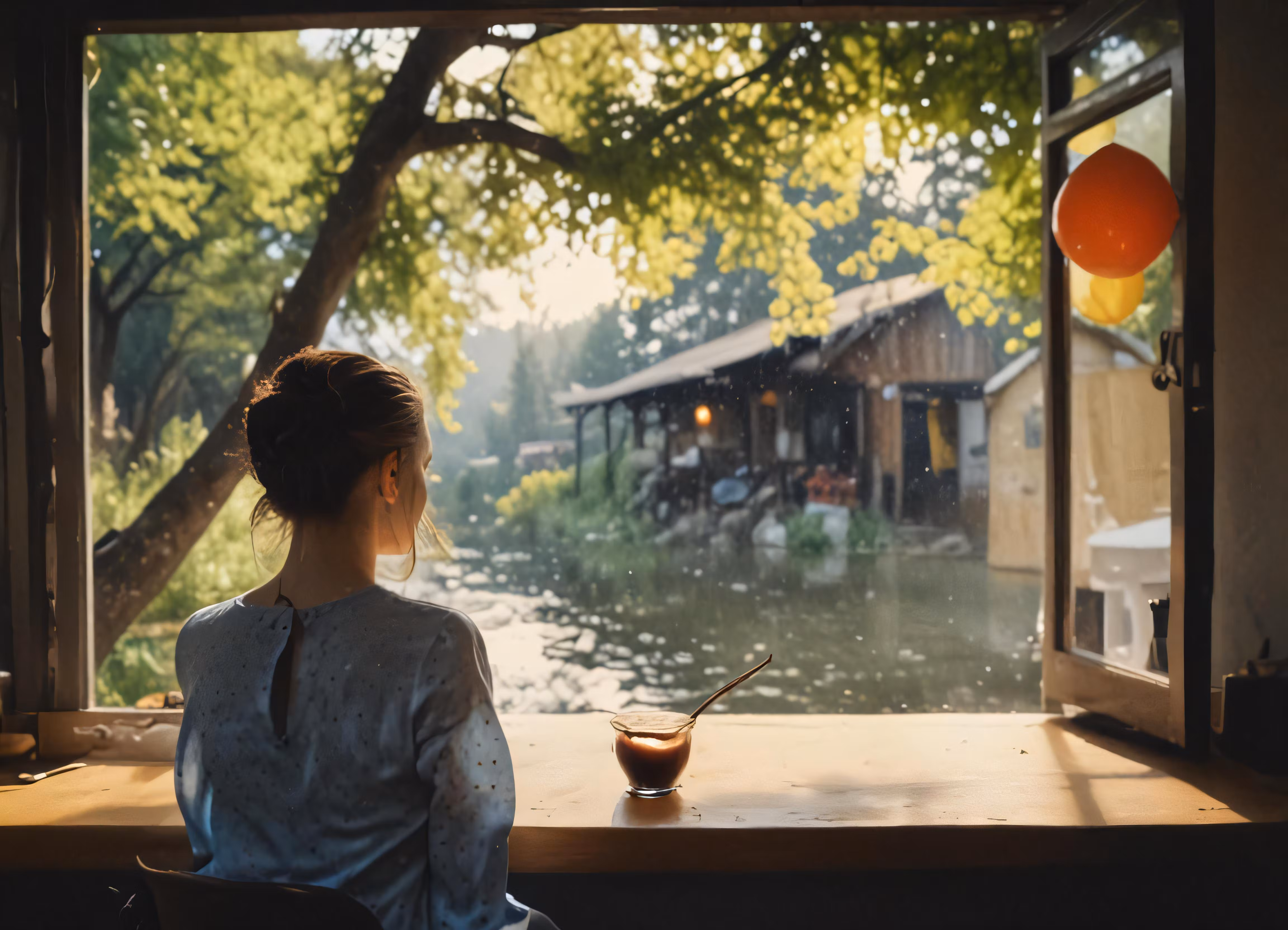 High resolution picture, free to use, a girl sitting in front of a window looking outside