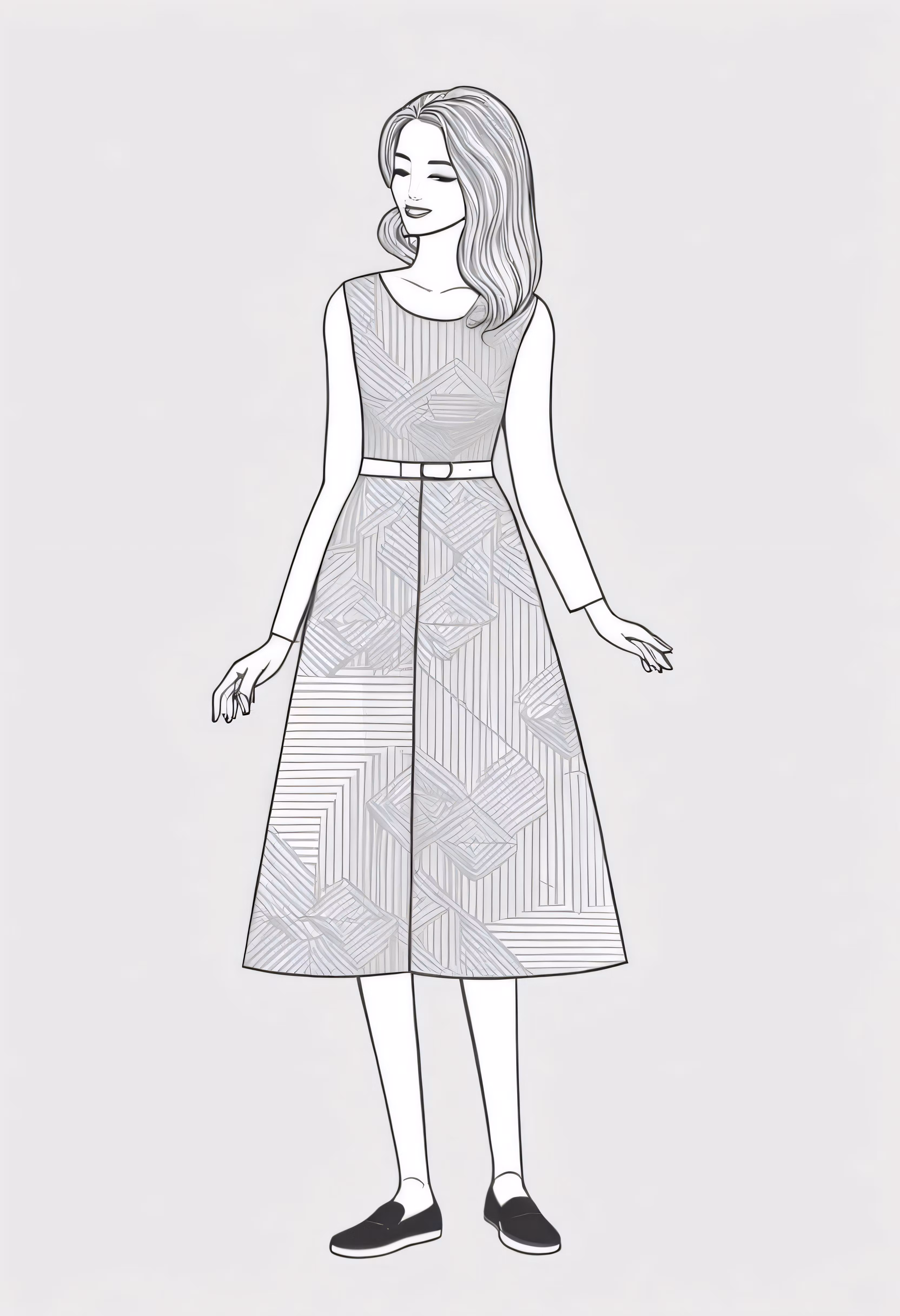 High resolution picture, free to use, a girl standing in a dress that has been drawn