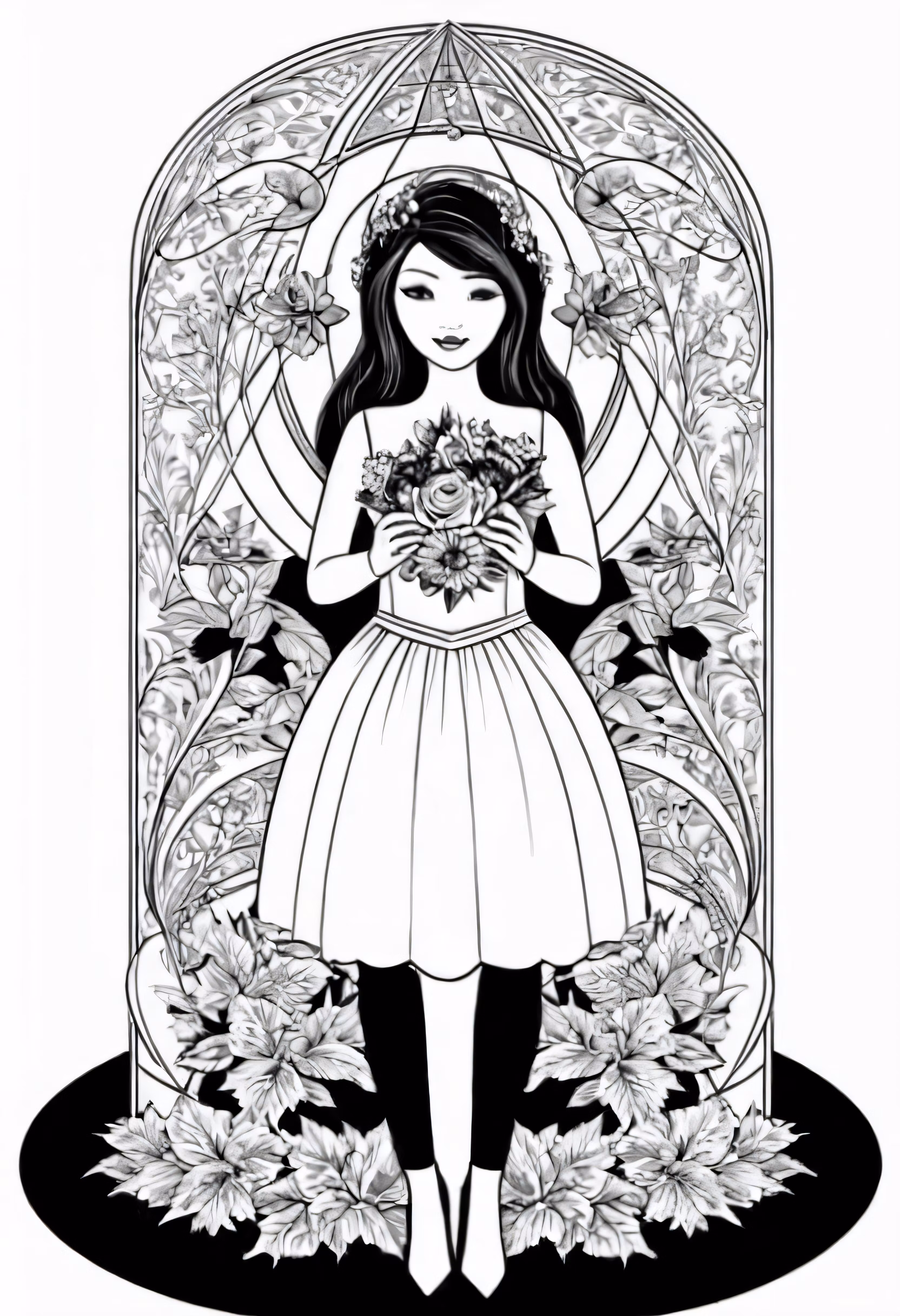 High resolution picture, free to use, a girl standing in front of an umbrella holding a bouquet