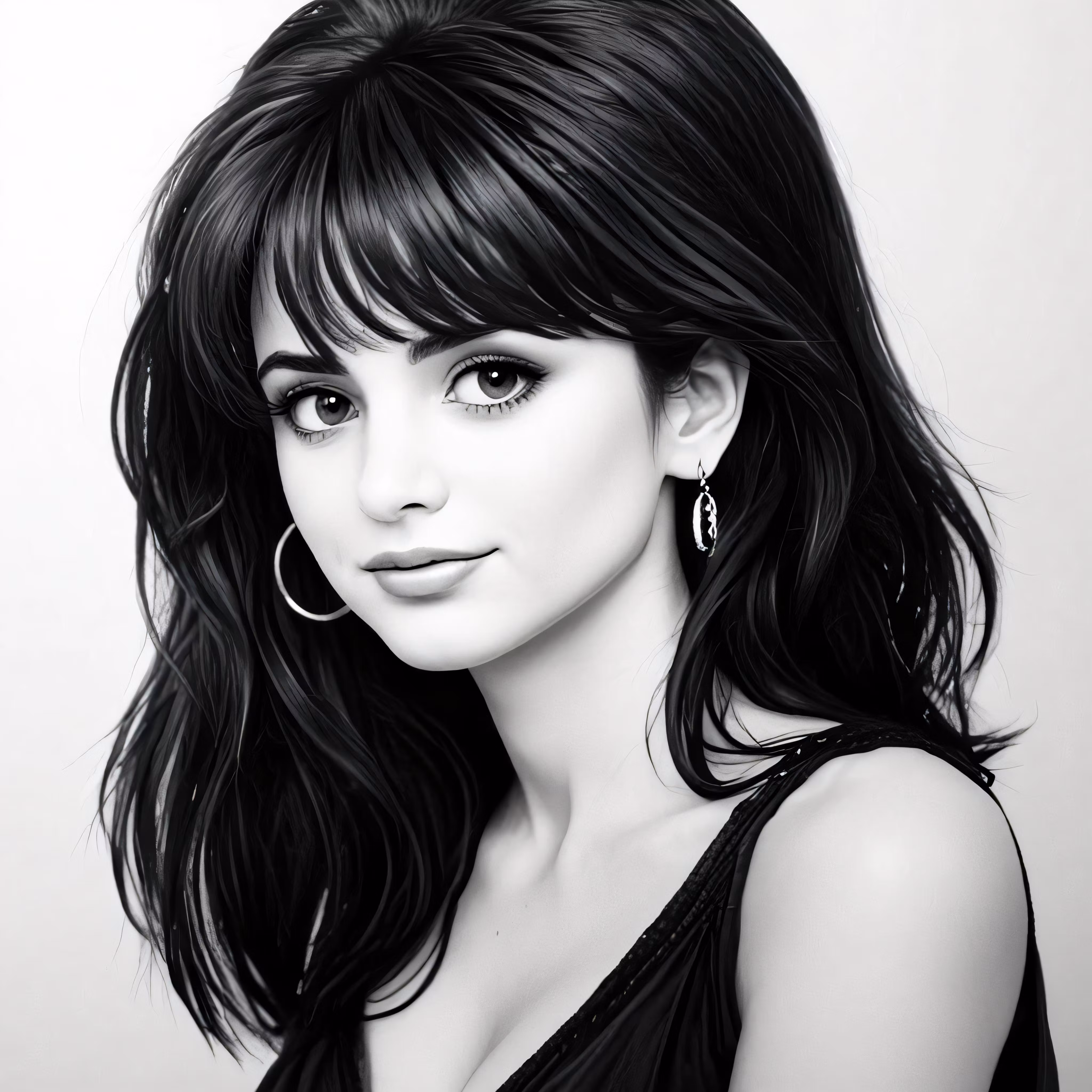 High resolution picture, free to use, a girl wearing a black shirt and hoop earrings