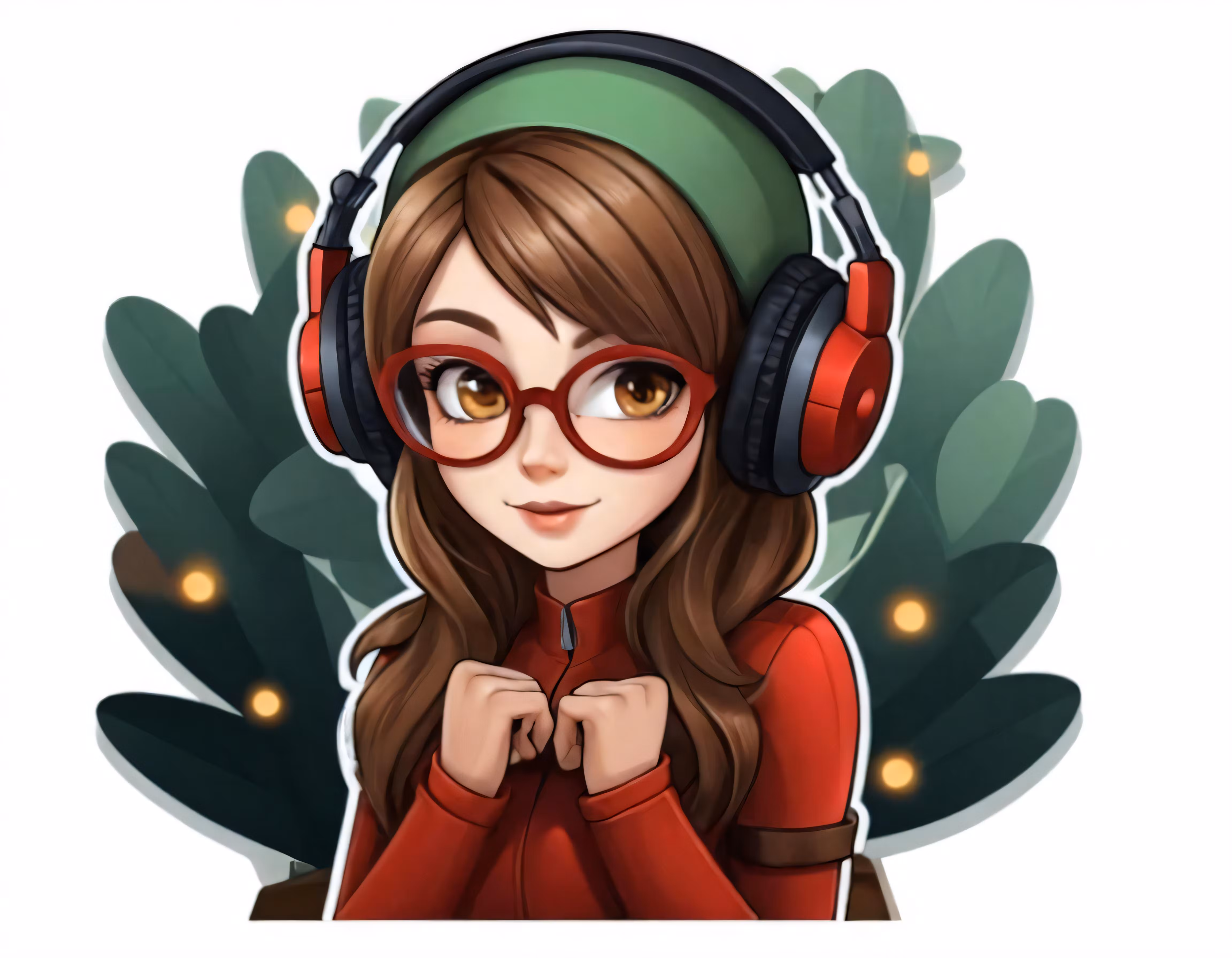 High resolution picture, free to use, a girl wearing headphones with a green plant